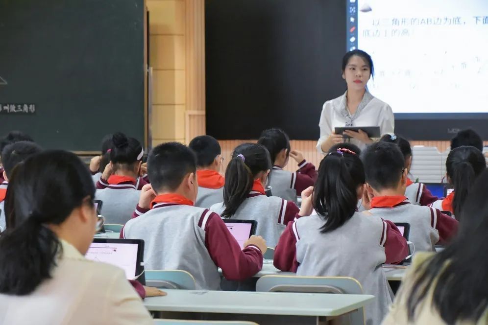 “三角形有什么神奇之处? 先来考考你们。请同学们在平板上快速作答。”这是通师一附的一节四年级数学课,学习的内容是《认识三角形》。执教的是一位年轻的数学老师袁嘉琦。 话音未落,学生们已经纷纷开始行动起来,打开手中的平板,点击屏幕完成这道选择题。借助平板,学生反馈会被实时采集、处理后传输到教师手中的教师端,便于教师及时掌握学生的学习动态。再配合 智能屏幕,教师就可以轻松选取学生的答案,有针对性地分析解惑。2分钟后,所有学生完成了题目,系统也自动统计出结果:正确率 93%,显示还有学生对三角形的特征认识不清晰。于是,袁嘉琦邀请同学们分析各个选项,帮助部分学生解答疑惑。这节课上,袁嘉琦老师还借助智能屏幕的放大功能,选取了学生绘制的三角形,帮孩子们学习三角形的定义。近年来,通师一附探索信息技术与课堂教学的融合,信息技术让传统的课堂变得更加丰富、更有趣味,丰富多彩的上课形式也受到同学们的欢迎。通师一附的几位老师都表示, 自己非常愿意研究如何把信息技术更有效地运用在教学中。“这些工具运用的好,确实会提高我们的教学效率。”信息化要和学科真正融合, 一定要从教学理念层面开始革新。在通师一附,数字化技术还被运用在体育课教学上。学校的智能跳绳系统能一次记录60人实时跳绳,并实时自动生成成绩,从而进行数据分析对比。体育教师有了更多时间用来给学生制定运动指导,设计更具个性化、专项化的运动项目。“从简单的一分钟跳绳可以分析出很多信息,比如学生 前30秒和后30秒成绩分别是多少,通过对比可以分析出学生 的爆发力、耐力水平。实现了 体育教学‘管理智能化‘‘过程可视化’‘分析精准化’”的需求,大大提升了体育教学效率和质量,同时也保证了学生的运动量化要求和运动水平提升要求。”副校长倪莉介绍。多元:STEM课程铸就“智慧”底色