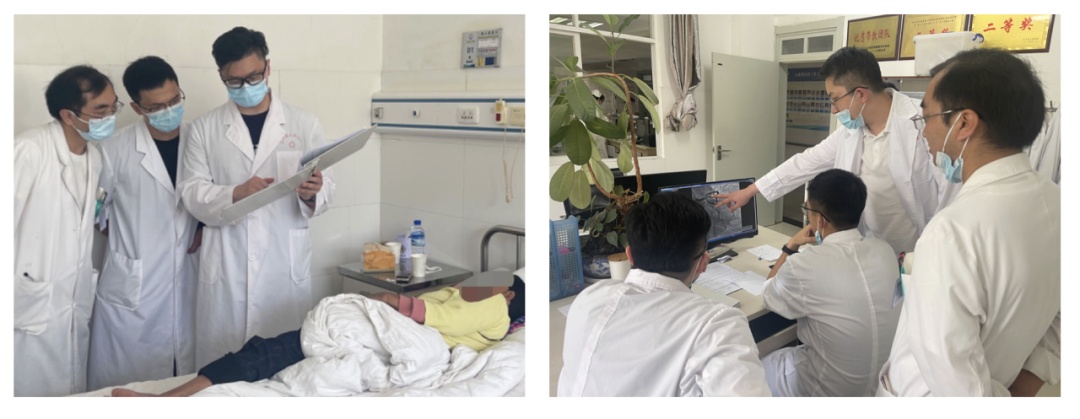 一同诊查患者(左)、开展术前讨论(右)