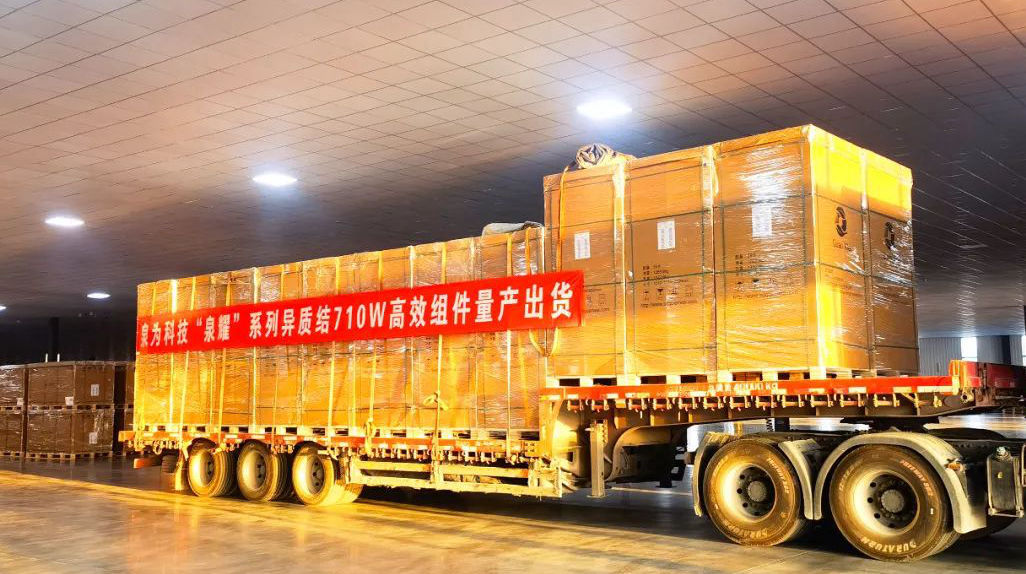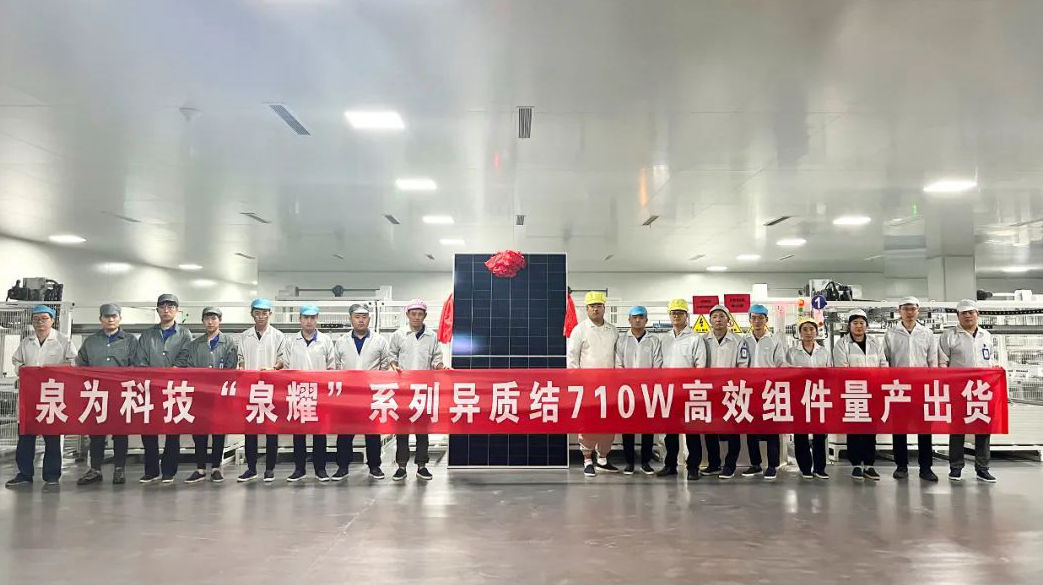 8月22日,泉为科技山东枣庄基地传来喜讯,“泉耀”系列710W异质结高效组件量产出货。