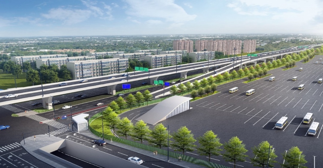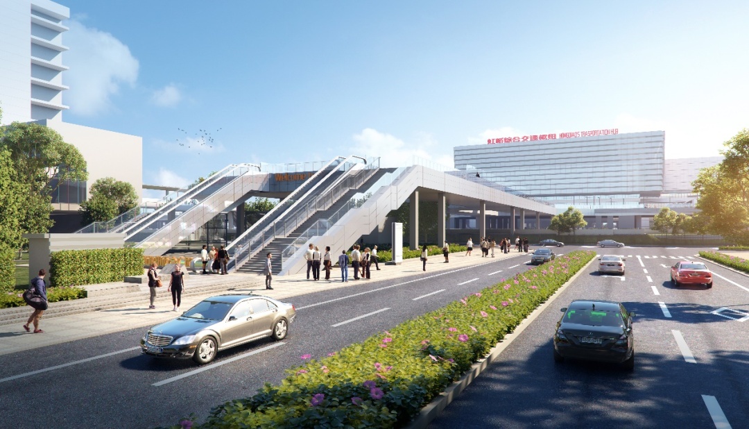 虹桥综合交通枢纽西交广场综合提升工程是虹桥商务区核心区基础设施配套项目二期的重要子项目,位于虹桥火车站西侧,主要建设内容包括扩建地下停车库(新增1069个停车位)、新建3座步行连廊、地面层改造、新建二层平台、已有建筑加固等。项目建设后将完善区域交通功能,提升枢纽使用效率,实现由城市枢纽向枢纽城市的转变。