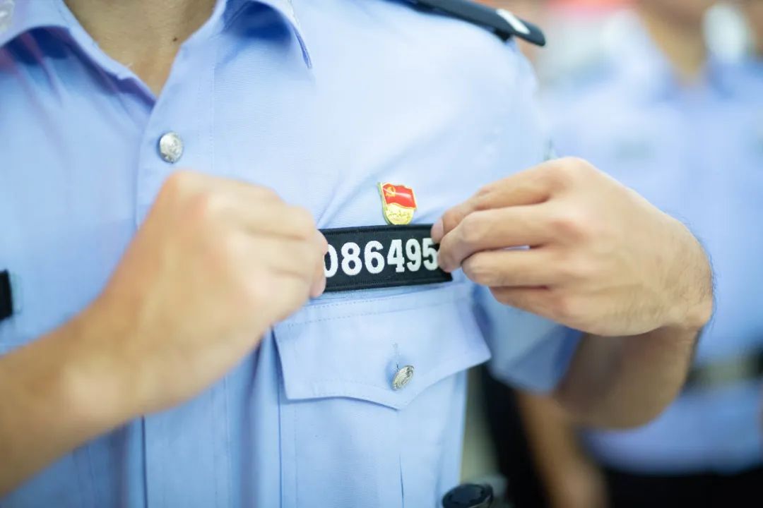 出征仪式前,上海铁路公安新警们获颁警号和警用装备,胸前的学员号换成了警号,新型警用装备系在腰间,责任在肩、使命光荣,标志着新的征程扬帆起航。