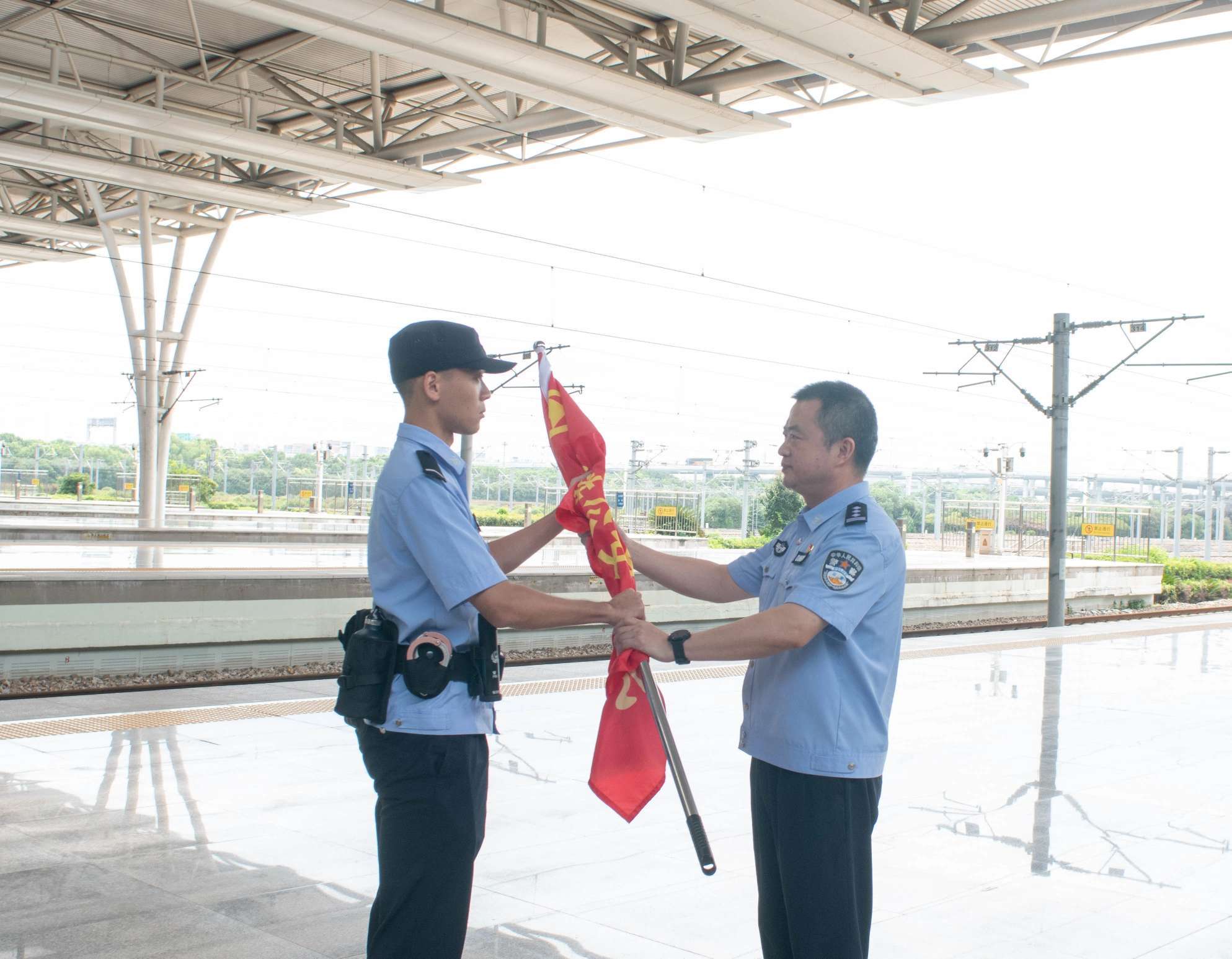 出征仪式上,上海铁路公安处相关负责人勉励上海铁路公安新警在亚运安保中,经受考验、淬炼本领、展示形象,在从警路上首个重大安保中展示最佳的形象、最严的纪律,向党和人民交出一份满意答卷。