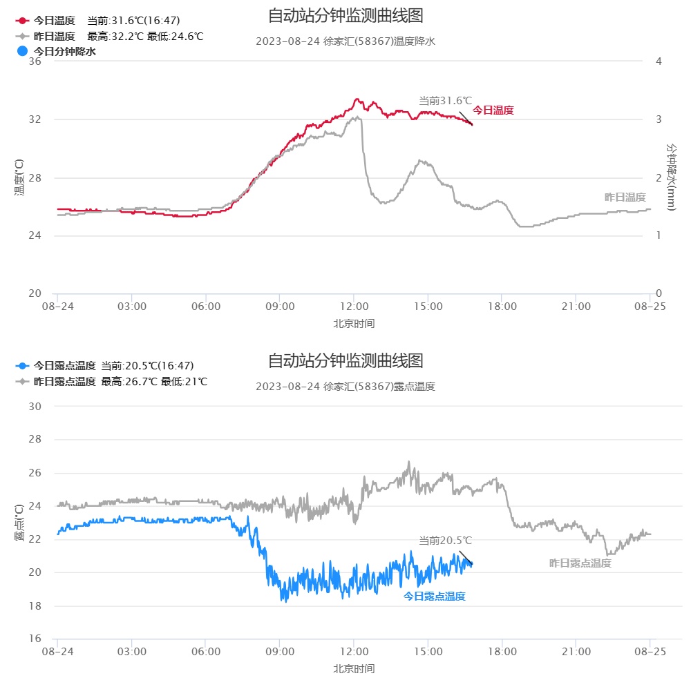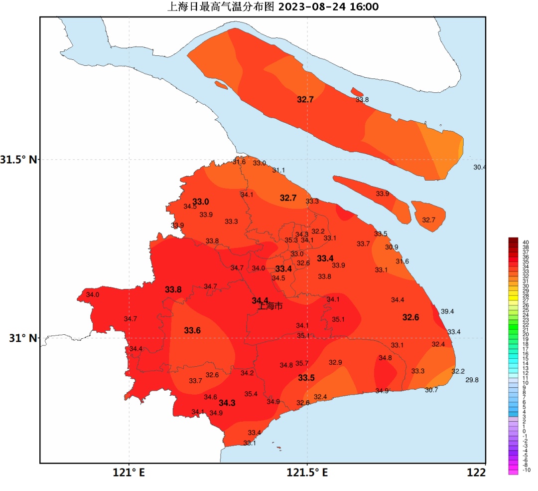 申城今天白天雨水较弱,只是在浦东南汇嘴、崇明东部等地出现了局部阵雨。少了雨水的打压,今天气温较昨天要偏高1℃多,其中,市区徐家汇站33.4℃,最高的是闵行站34.4℃。