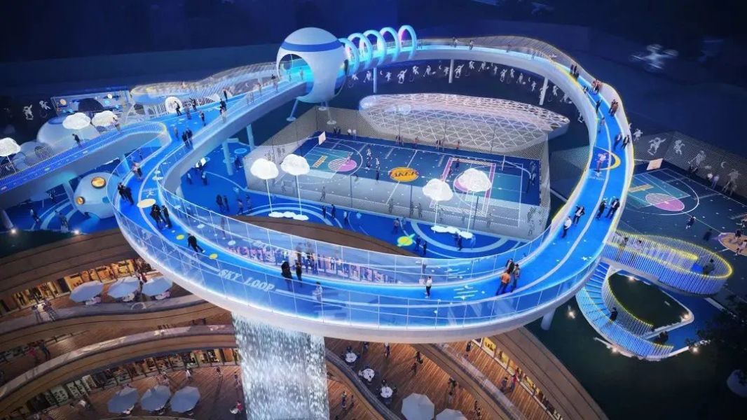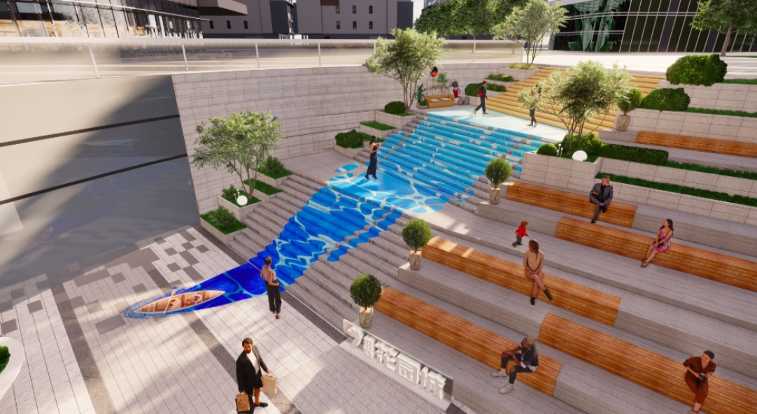 室外36米的“天环飞瀑”,将是曹路招商花园城标志性的“打卡地”。天环飞瀑向上衔接星环跑道,向下跃阶弧形看台直抵下沉广场,天空与地面自然过渡,伴着树木、花瓣、树荫、绿草等元素,充满自然气息。