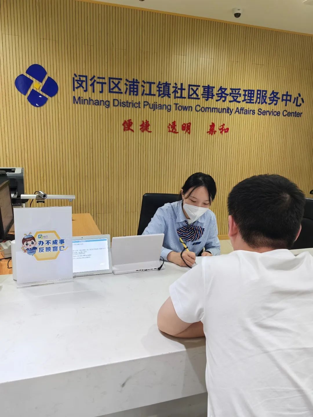 在浦江镇社区事务受理服务中心,有一个特殊的窗口——“办不成事”反映窗口。不少群众反映,平时遇到一些棘手的特殊情况、办事难题,都是通过这个小小的窗口实现多部门协调联动,得到了切实解决。