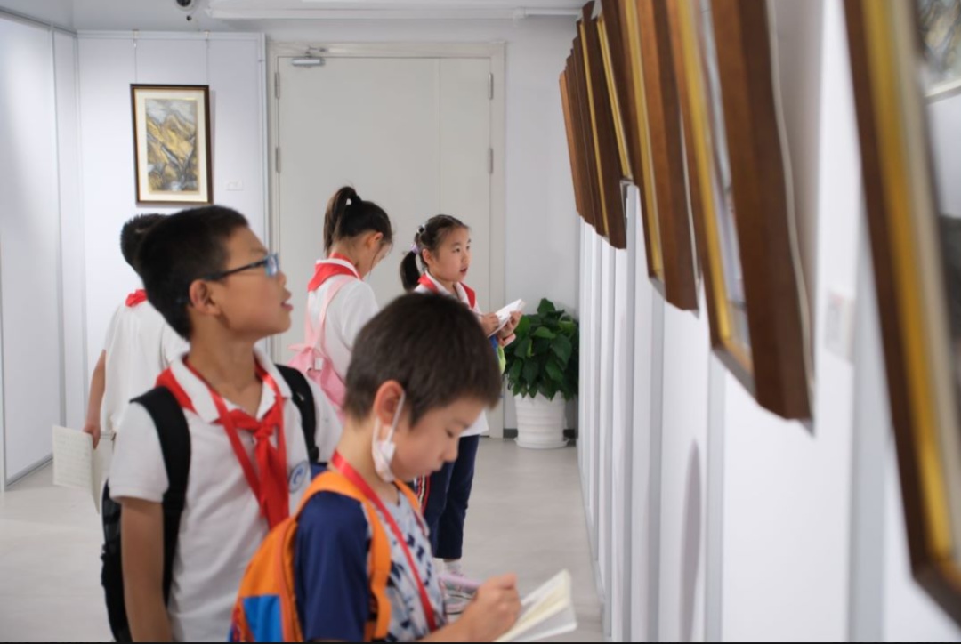 小记者们还走进了书香曲阳文化会客厅,参观了正在会客厅内举办的“庆八一 颂祖国山水画展”,了解这处社区文艺打卡地的背后故事。