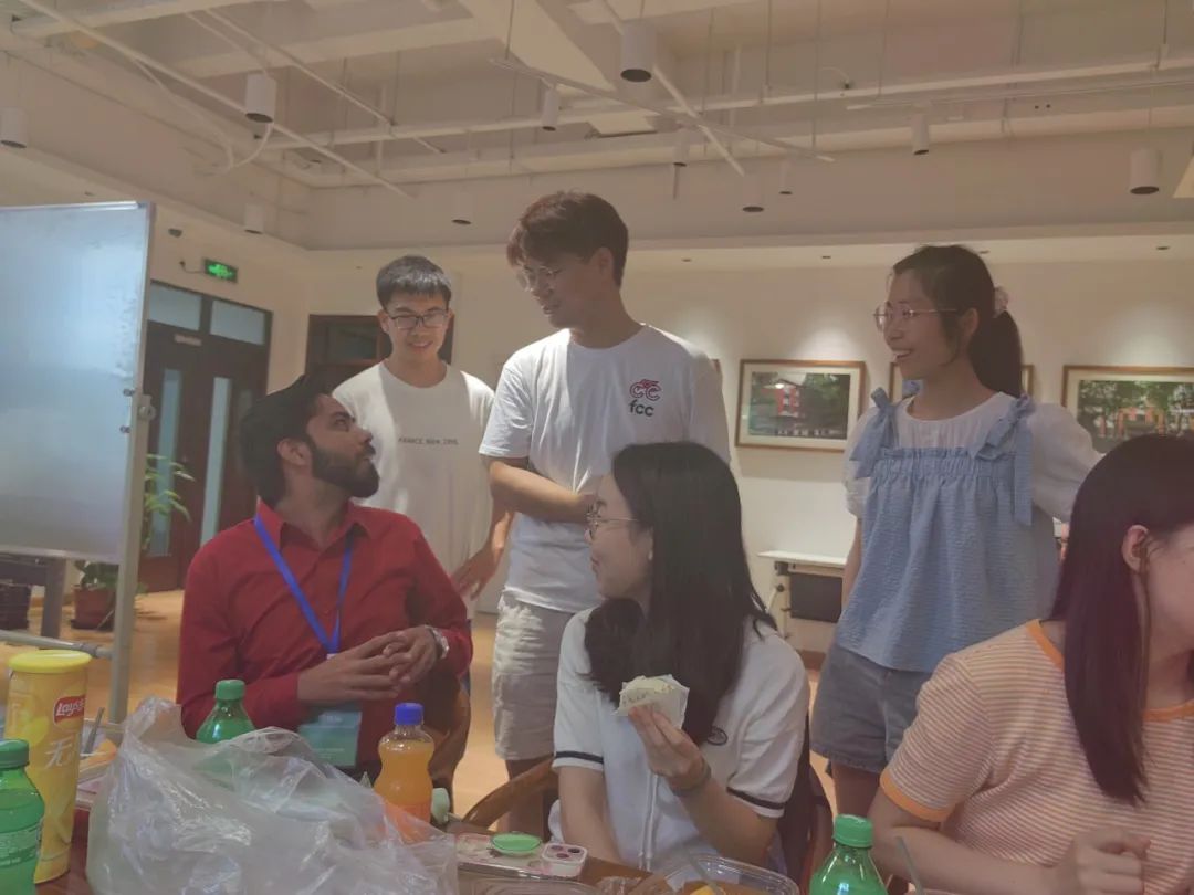 对陌生领域的好奇、对熟悉领域的追问,对兴趣爱好的分享,在用餐、课间、班级活动时,总能看见同学们三三两两围在一起说着笑着。陈奕佳将这些称为一种“生活上的气息”,“除了学术讨论,大家还会聊自己的兴趣爱好,或是自己如何处理科研和生活的平衡,或者说说学习跟生活之间的时间管理。”