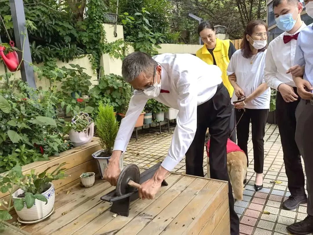 闻一闻各种芳香植物;为植物浇水,摸一摸它们生长到什么阶段;用药碾子碾碎香料,制成驱蚊的小香丸……“刚刚那个植物有着生巧克力一样的味道,很新奇。”视障人士袁永年说。