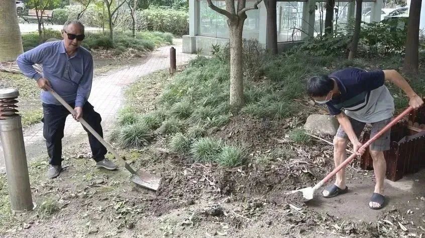 同时,为改善小区中心花园土壤裸露、缺乏生机的情况,柳营桥志愿者及时开展排水沟开挖、种植土搬运、花箱组装、灯具组装、盆花搬运等前期工作,并用花箱、时令草花、木栅栏等进行空间装饰,打造成为“迷你花园”。