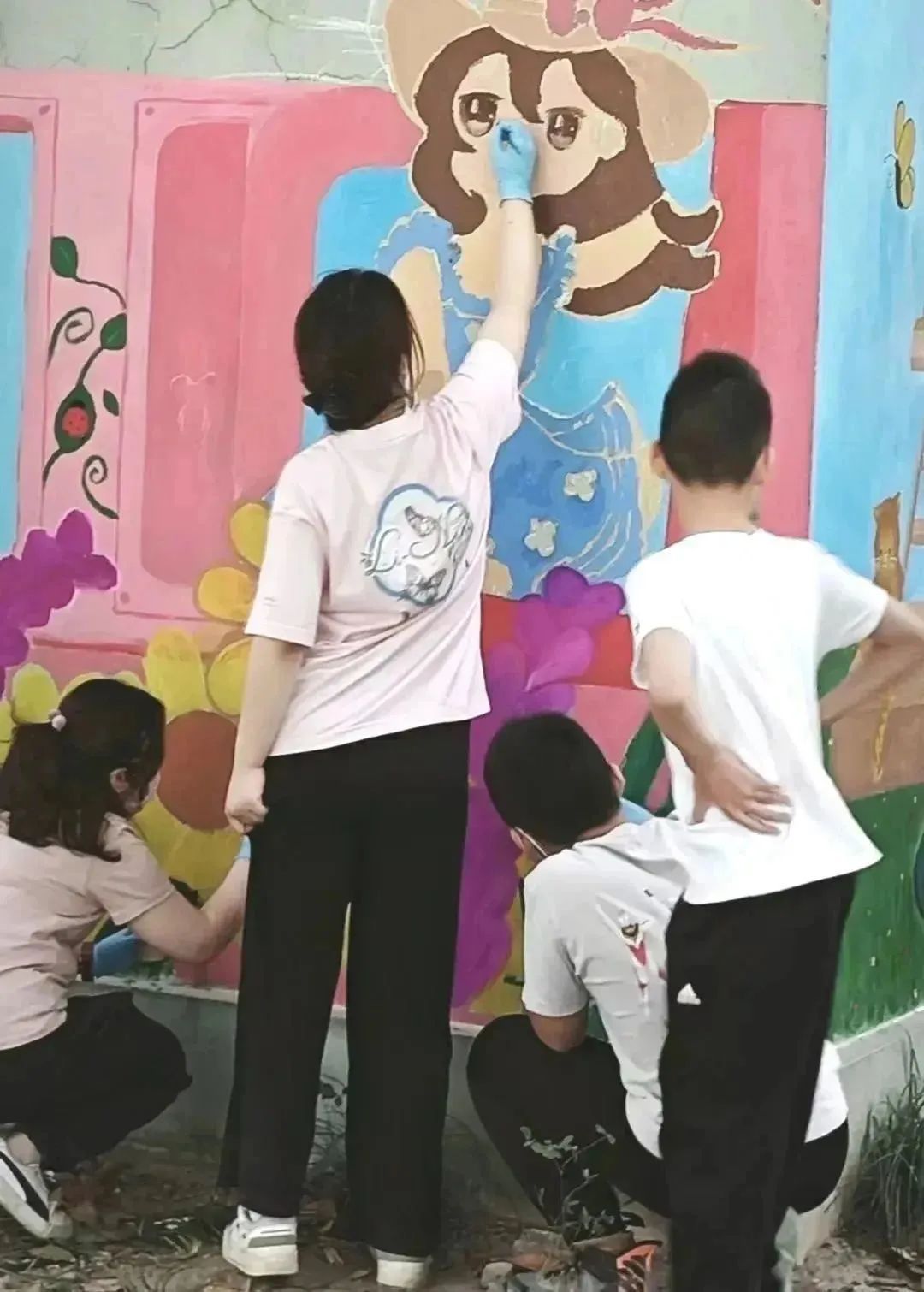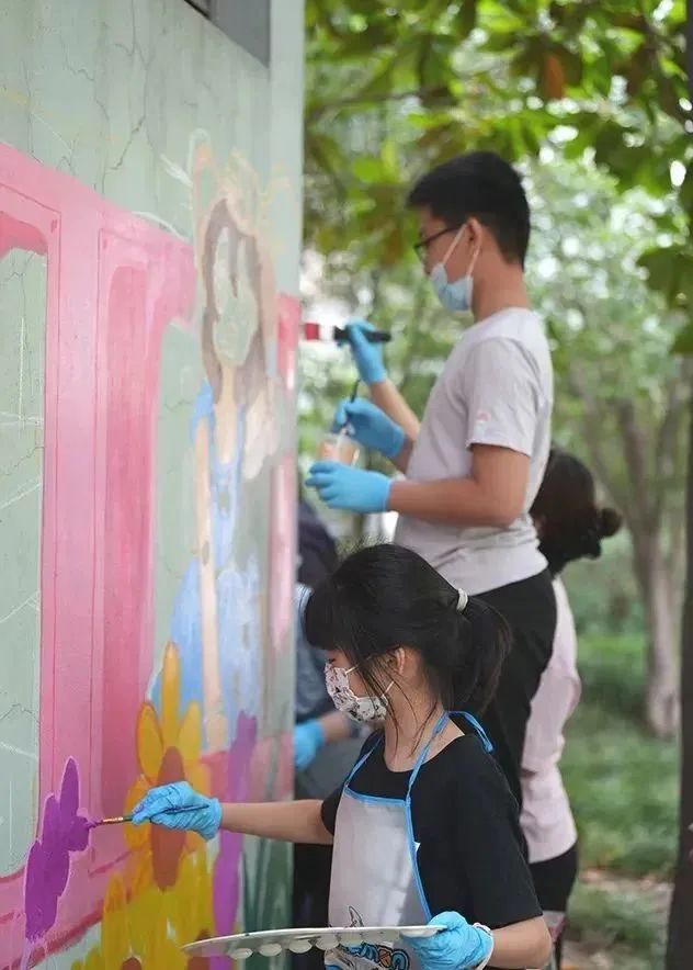 活动过程中,柳营桥居民志愿者们一同用颜料对中心花园风井墙体进行手绘美化,小区有绘画基础的居民首先用粉笔、浅色颜料进行整体画面布局、基础线条勾勒,为小朋友们后续上色打下基础……大小朋友齐出力,共绘家园美好画卷。