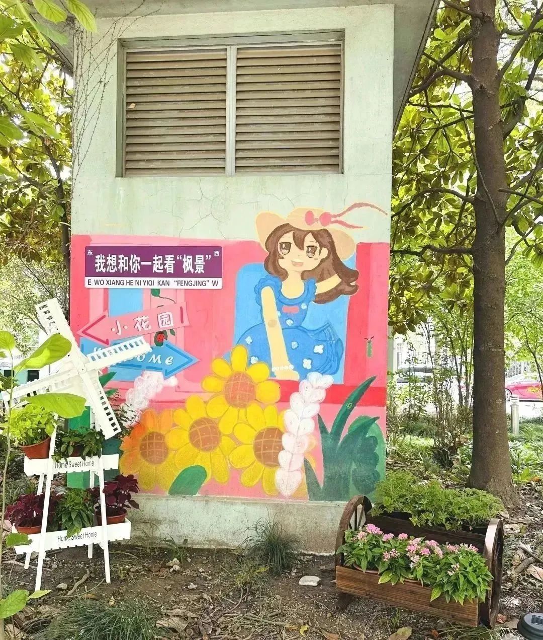 与经手绘美化的风井外墙