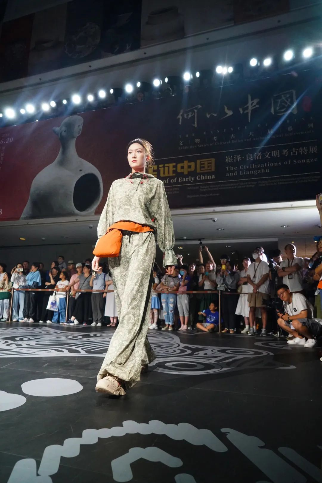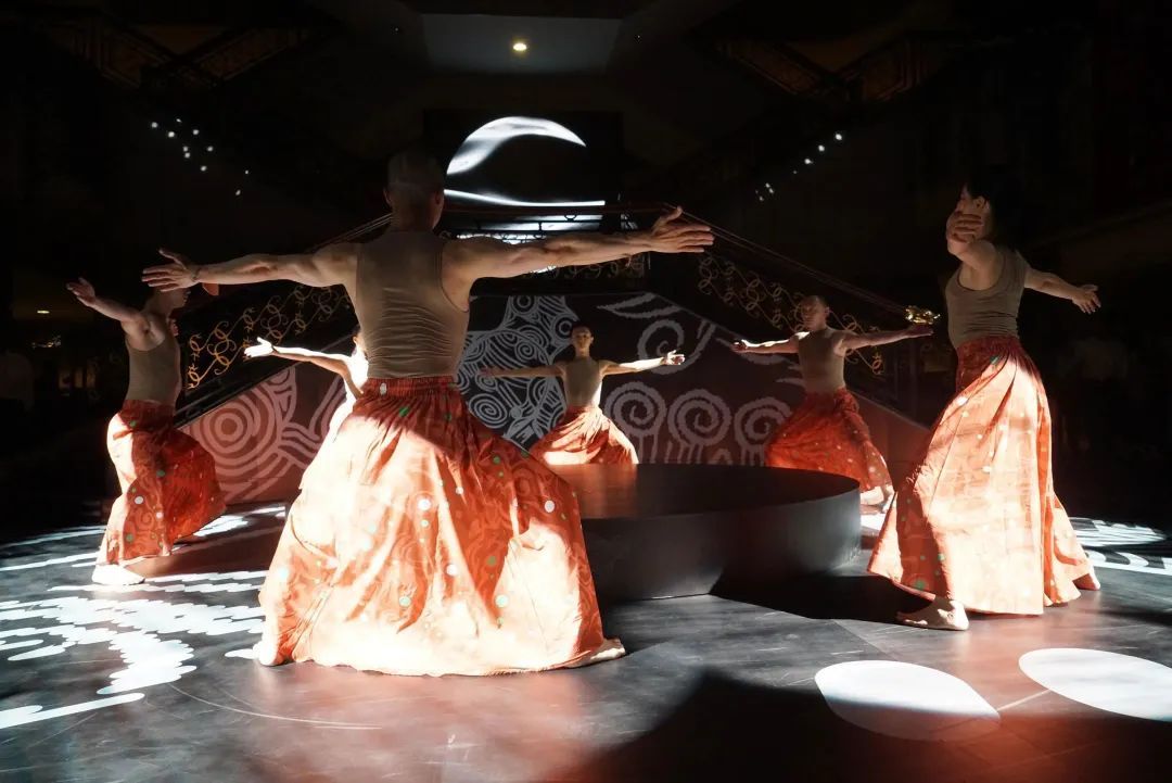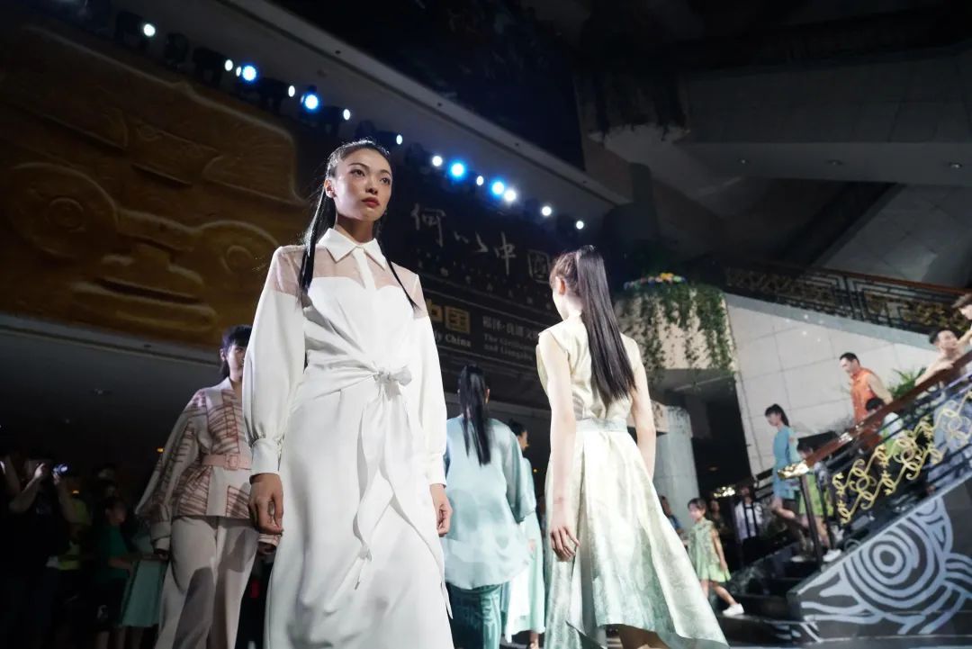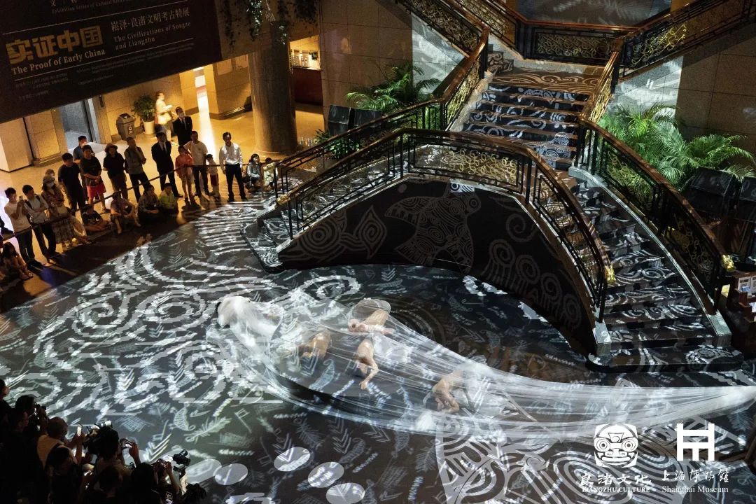 这场综合现代舞、服装秀、音乐秀和数字投影灯光秀的美学盛宴在开始前就吸引了许多观展的市民。演员们通过现代舞表演,讲述良渚先民在大自然中拼搏抗争的艰辛;多彩的服装秀在3D Mapping和全息投影等多媒体技术的烘托下,呈现了一场与远古先民关于生活美学的跨时空对话。