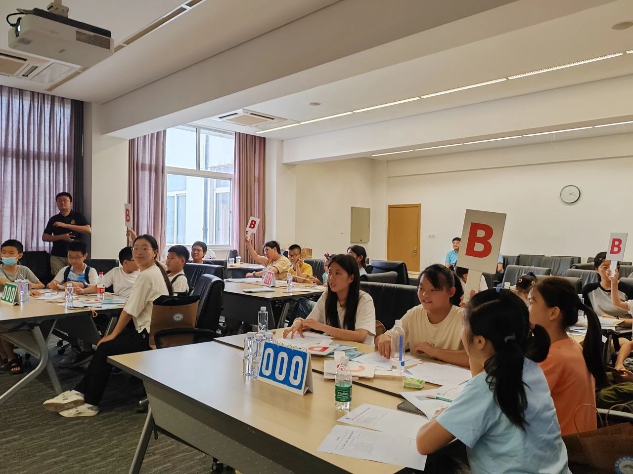 与此同时,来自辖区的15名青少年作为旁听观众,不仅全程观摩了模拟法庭表演,还在大学生的带领下参与了质证环节,通过证据清单找到对方证据中的漏洞,开启沉浸式学法新体验。而轻松的问答环节,则进一步加深在场青少年对法庭纪律、案件适用程序、庭审阶段顺序以及质证环节的了解。