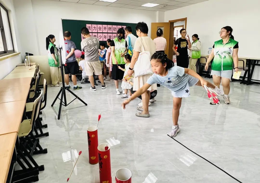 “加油,加油!”“耶~赢了!”在宜川社区党群服务中心内,加油助威声此起彼伏,仿佛置身奥运会现场。运动会项目包括“趣味投壶”“金属套圈”“巧运乒乓球”“磁吸飞镖”“堆叠螺母”“摸石过河”等趣味运动项目,小朋友们各个充满活力,小小的身体在赛场上蕴藏着无限的能量。