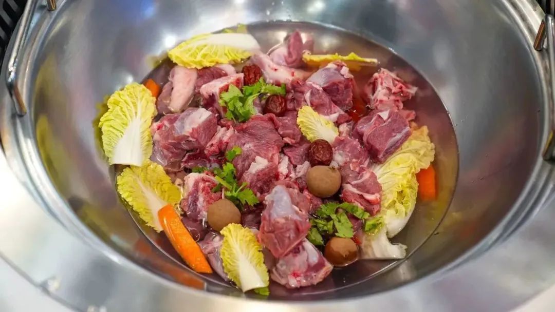 由几位维吾尔族同胞经营的新疆兄弟羊庄,主打一个新鲜。据了解,该品牌在青海建立了自己的牧场,通过活羊运送至苏州,每天凌晨3点将宰好的羊肉配送至上海,保障羊肉的新鲜度。店内主打产品看似简单——矿泉水煮羊肉,仅仅加入了简单的配料,却让羊肉留下了它的鲜香且少有膻味。煮开后一定记得先喝几碗清汤,再尝原味的羊肉,而后再涮些自己喜爱的配菜,真是“贴秋膘”的最佳选择之一!