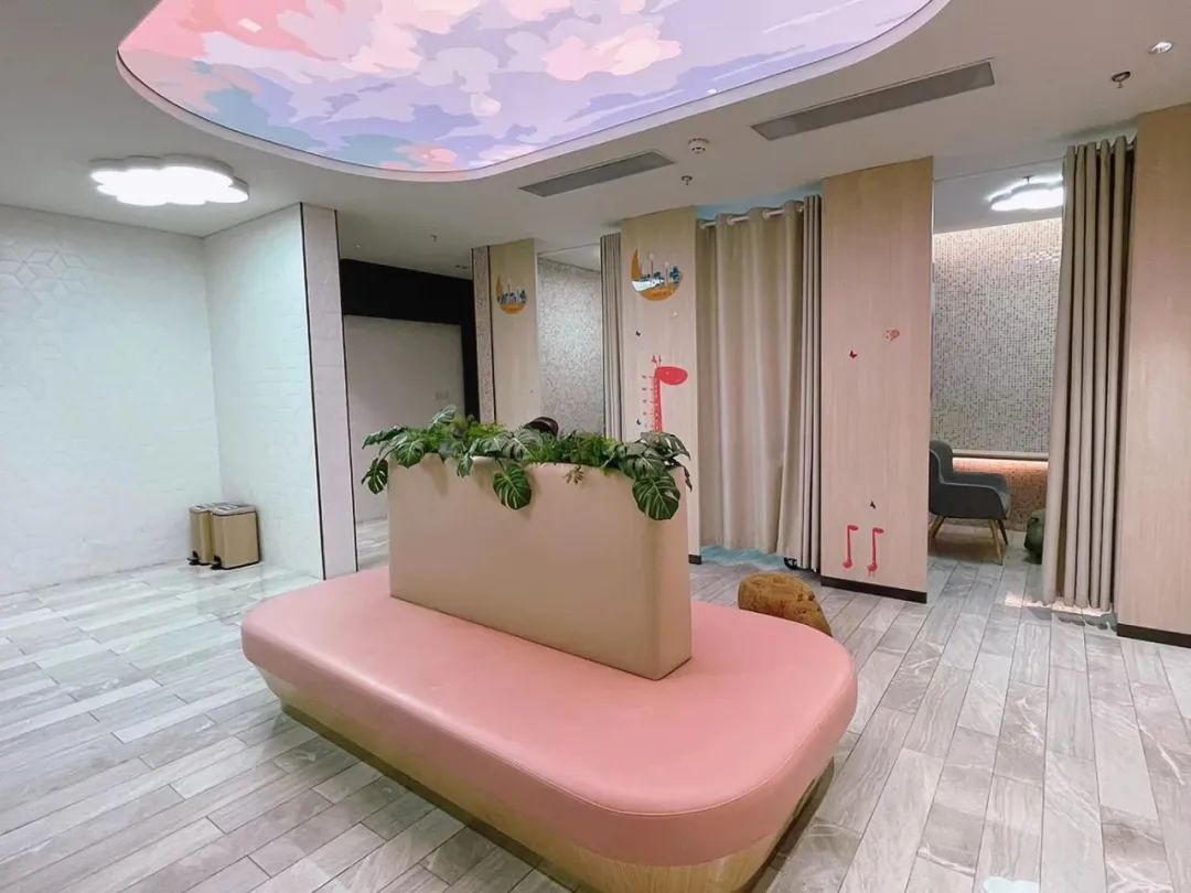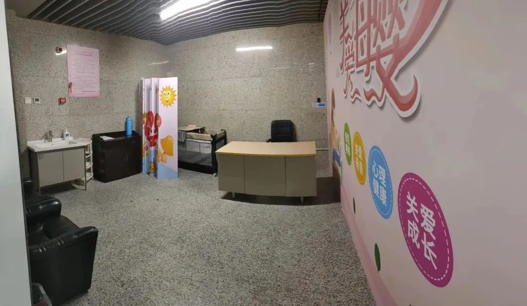 明亮温馨,配有温奶器、直饮水机、冰箱、带安全扣的婴儿尿布台、哺乳隔间等设施,一方小小的世界,无论是哺乳、更换尿布还是稍作休息,都能“一站式”解决。保洁人员每2小时会对母婴室的地面以及公用设施、物品进行消毒,力求打造一个干净、舒适的亲子空间。