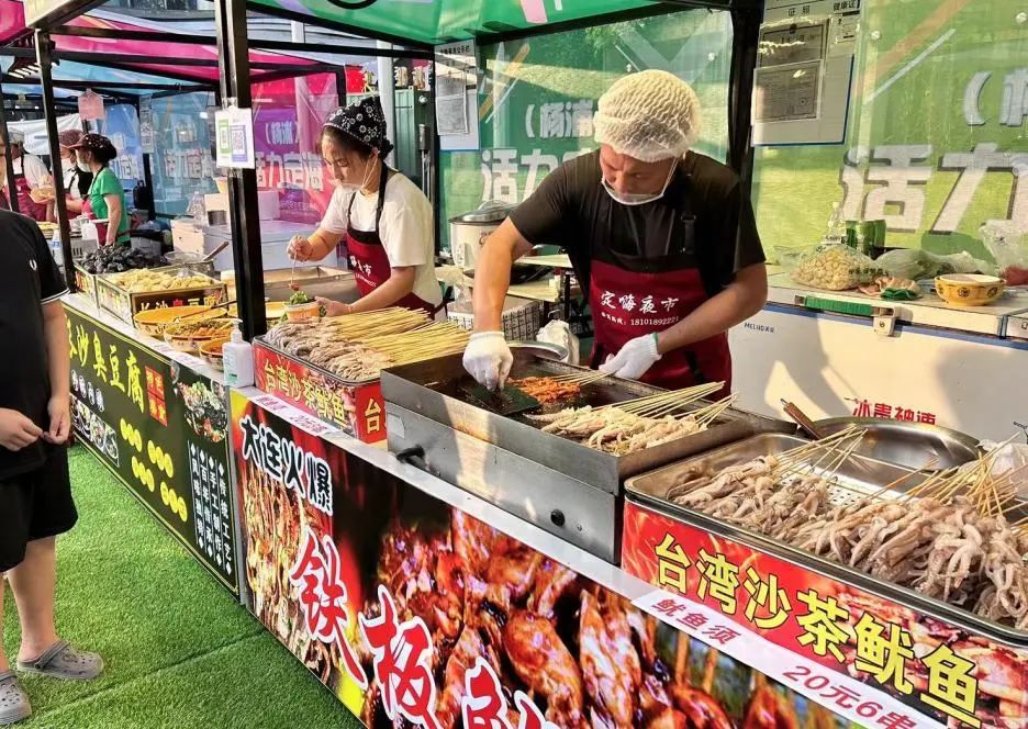 肠粉、牛杂、粥品、热卤、爆肚、飞饼、鸡翅包饭、汉堡、生蚝、鱿鱼、肉串、蚵仔煎、鸡柳、炸串……随便逛逛,就能让人胃口大开;更有各类饮料甜品,比如奶茶、啤酒、冰沙、芋圆等等,消解夏夜的暑热。
