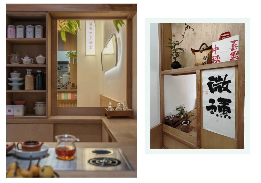 柴米油盐酱醋茶,茶作为中国人的开门七件事之一,在当下也被玩出了新花样。茶咖、茶酒、茶果饮等新颖的搭配和组合,在古北黄金城道的“袋表作茶研室”中层出不穷。