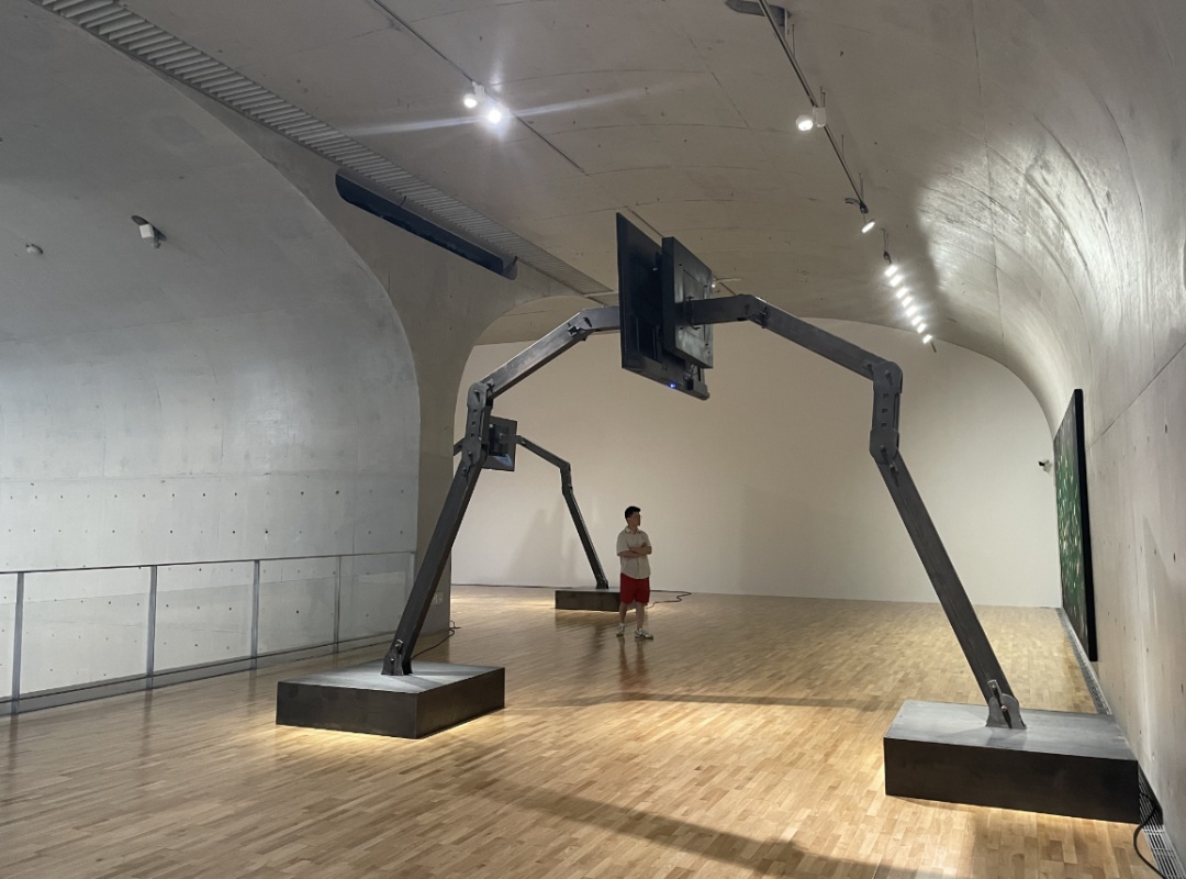 在现场可以看到,大型装置《降临》材质取自回收的八台废弃ATM机。徐渠把机器拆解、展平放置后,组合在一个平台之上,并在这些ATM机屏幕中设置成随机播放的关机瞬间画面。观众行走在装置平台上,可以俯视它们。