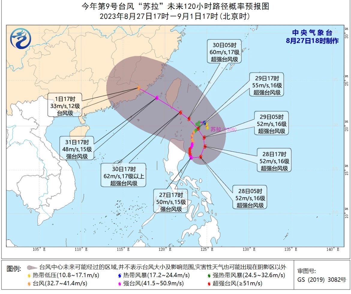 9号台风“苏拉”于29日开始向西北方向移动,并将于30日夜间掠过台湾岛南部,31日白天进入台湾海峡。8月底至9月初受其外围环流影响,上海多阵雨天气,正逢开学季,请大家继续关注台风“苏拉”的动向及其风雨影响。