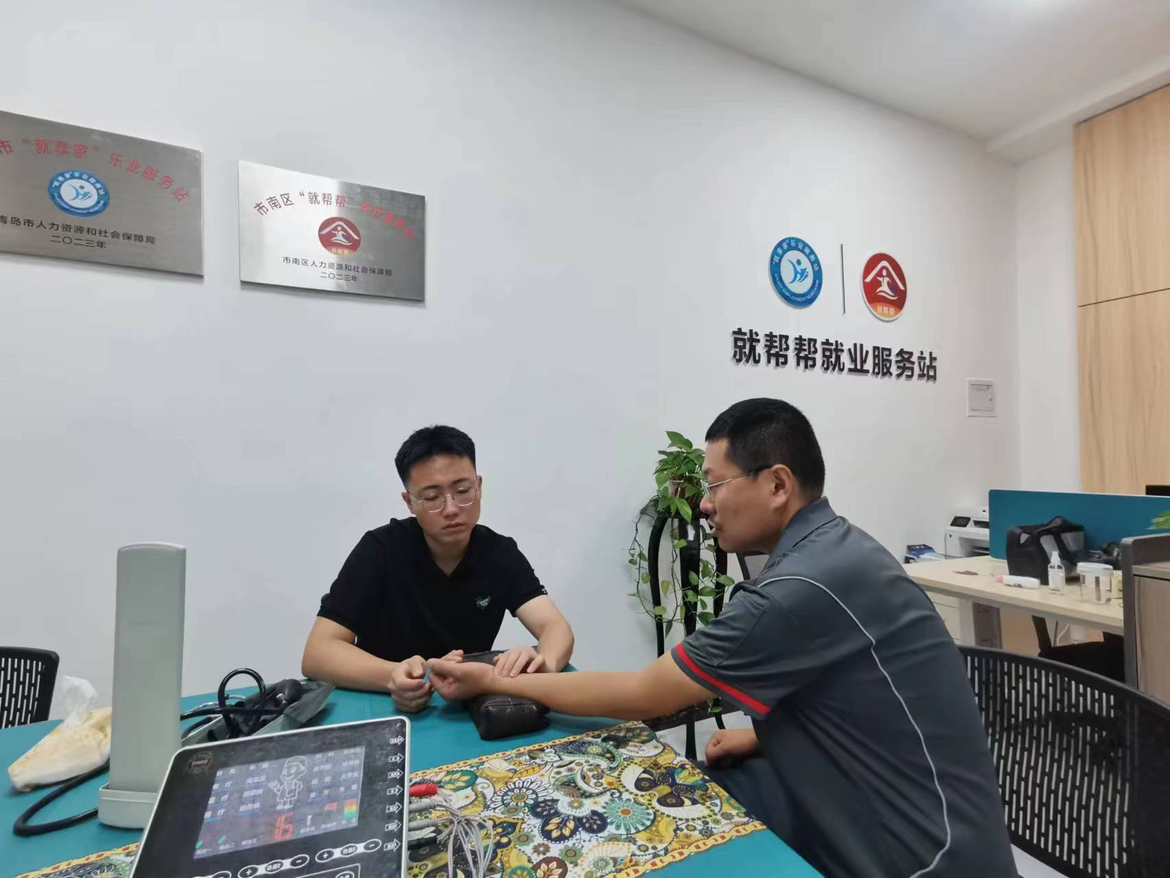 为进一步关心关爱新业态、失业人员等重点群体,8月28日-9月1日,青岛市市南区人社局在“就帮帮”就业服务站安排健康义诊周活动,提供免费诊脉、推拿、按摩、理疗等健康服务。