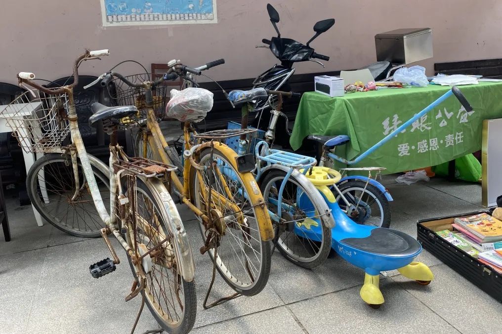 除了有孩子们喜欢的物品,不少居民还借此机会将自家的闲置自行车推来。居委工作人员表示,老年人对物品比较爱惜,借这次公益市集的机会,他们把这些停在小区里久置不用的自行车拿来捐赠,不仅是做公益,还能助力社区释放更多空间,有利于社区创全工作的开展。