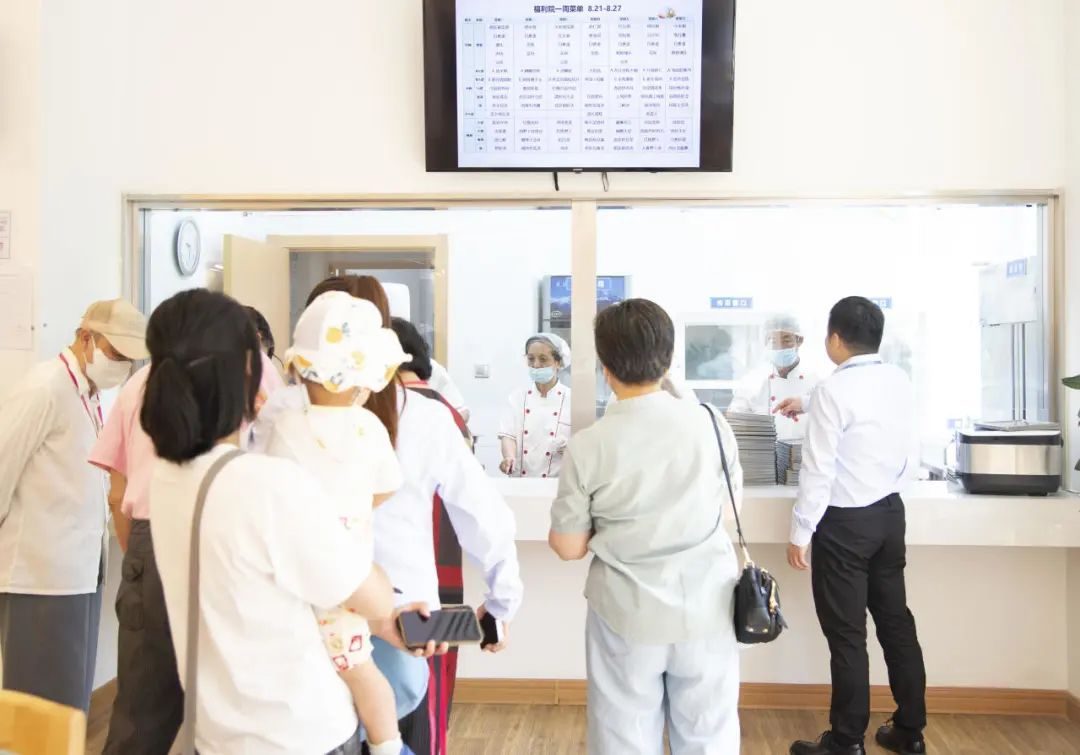 “食堂饭菜怎么样呀?老年人吃得好伐?”一边参观,一边就有参观人员向工作人员询问老年人的餐饮情况。面对询问,院长葛惠芳详细介绍道,在吃的方面以清淡饮食为主,注重营养均衡、荤素搭配,还会根据老人需求进行适时调整。同时,为满足周边老人的用餐需求,一福院还推出爱心助餐服务,设立社区食堂,合理搭配菜品,为社区老人提供健康营养的餐食。