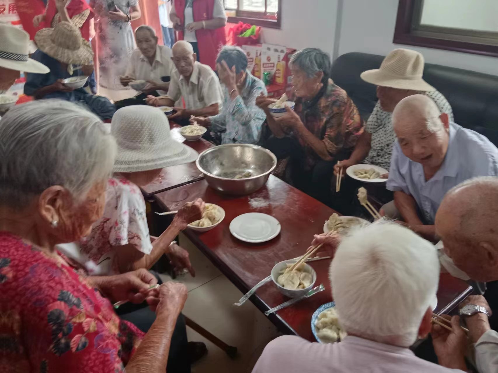 厨房里更是热闹非凡,志愿者们分工有序,从洗菜、切菜、擀面,再到调馅、包饺子,每一个环节都严格把关,精心制作,很快,一个个外形饱满、卖相十足的饺子就包好了。“大爷、大妈,饺子刚出锅,您慢点吃,小心别烫着。”当志愿者们把一碗碗煮好的饺子送到老人手中时,老人们既开心又感动。