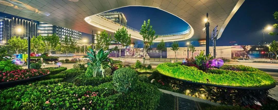 不仅整体形似花,桥面上也可随处见“花”,四季有景的桥面俨然是一座空中花园,其内还设置了休闲座椅,可供市民游客休憩。