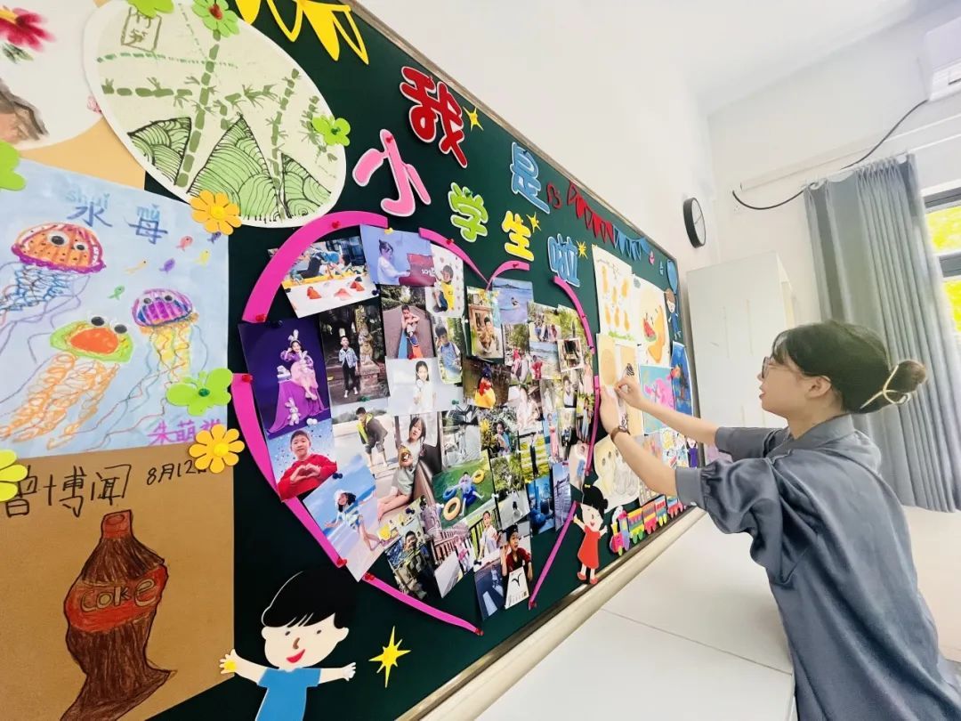 为迎接即将到来的开学季,中福会浦江幼儿园里的教师们提前筹备开学“欢乐水世界”活动、班级教室环境的创设……富有童趣的主题墙,温馨的游戏环境,处处都是教师们根据幼儿的身心发展特点进行的环境创设。