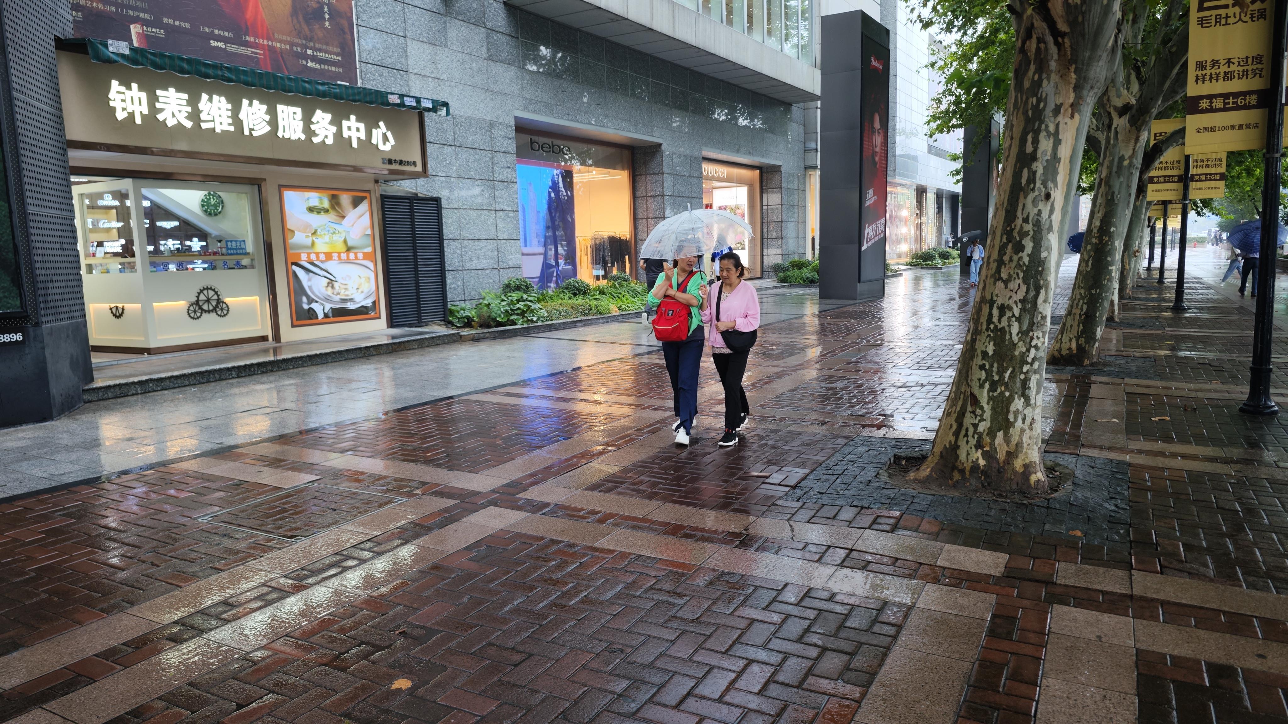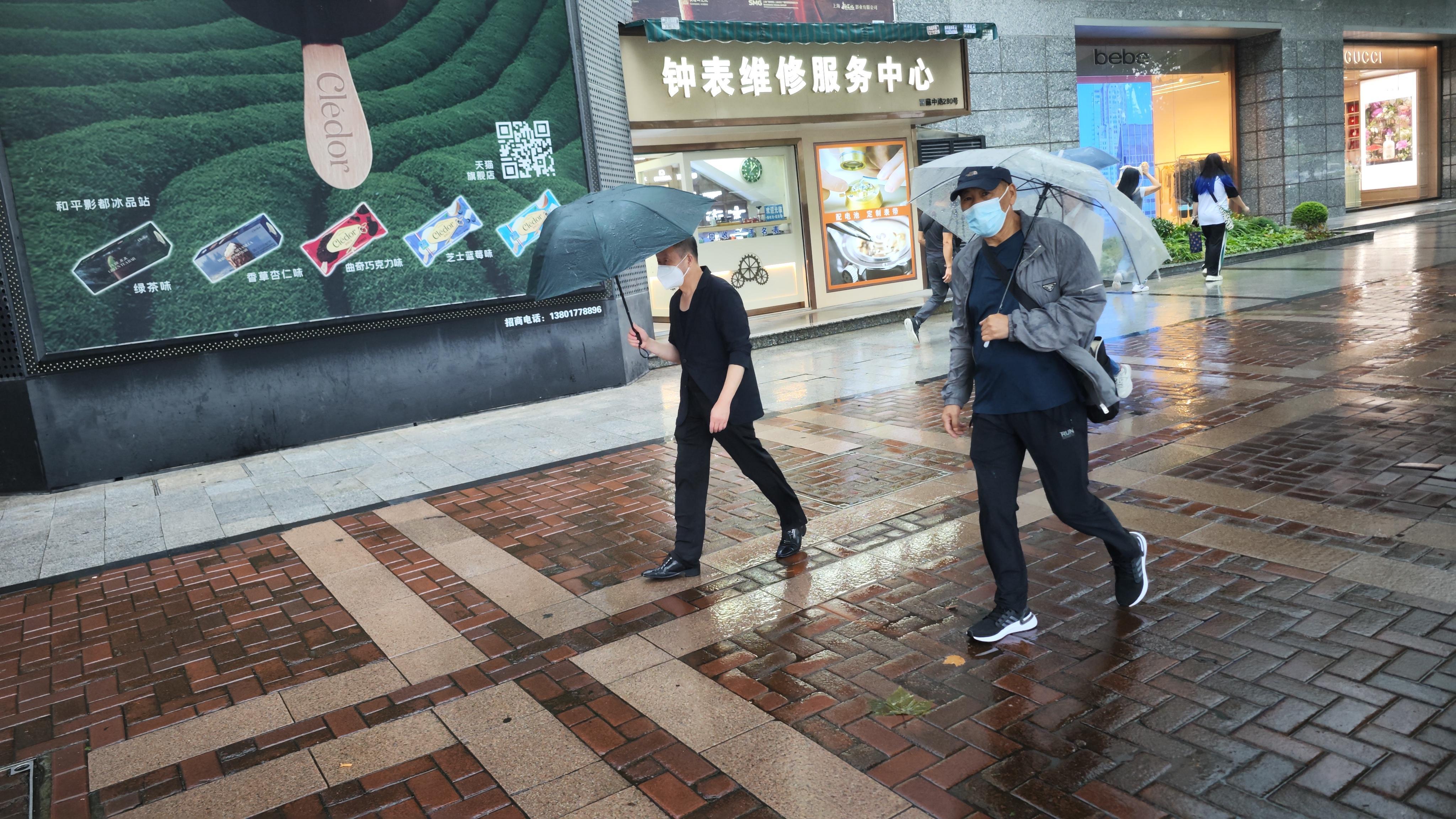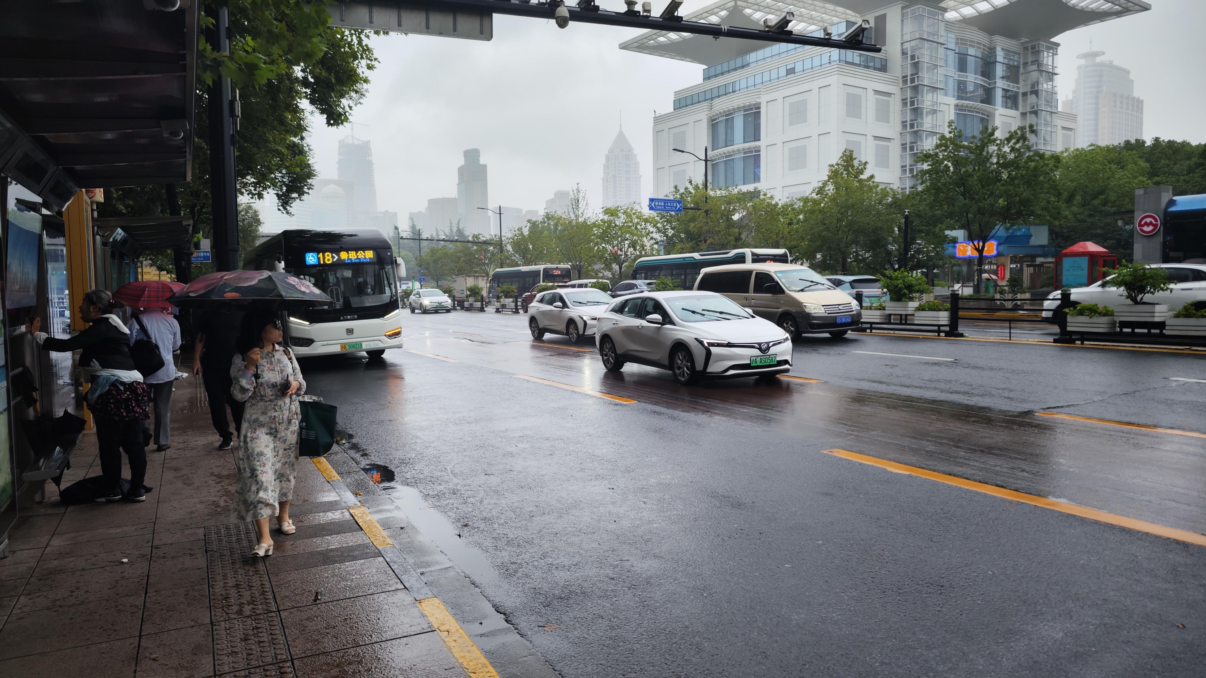 昨天的雨水几乎是下了一整天,今天继续,雨水断断续续,时大时小,给早高峰出行也带来一定的影响。阴沉沉的天空让整个街头黯然失色,只有一把把彩色的雨伞,稍稍带来一抹亮色,今天的最高气温只有26℃,昨天还是全员短袖上阵,今天的街头却已经不乏穿长袖的市民,雨水滴滴哒哒打在身上,再迎面吹过一阵风,体感着实有些冷飕飕,让人有入秋的感觉了。