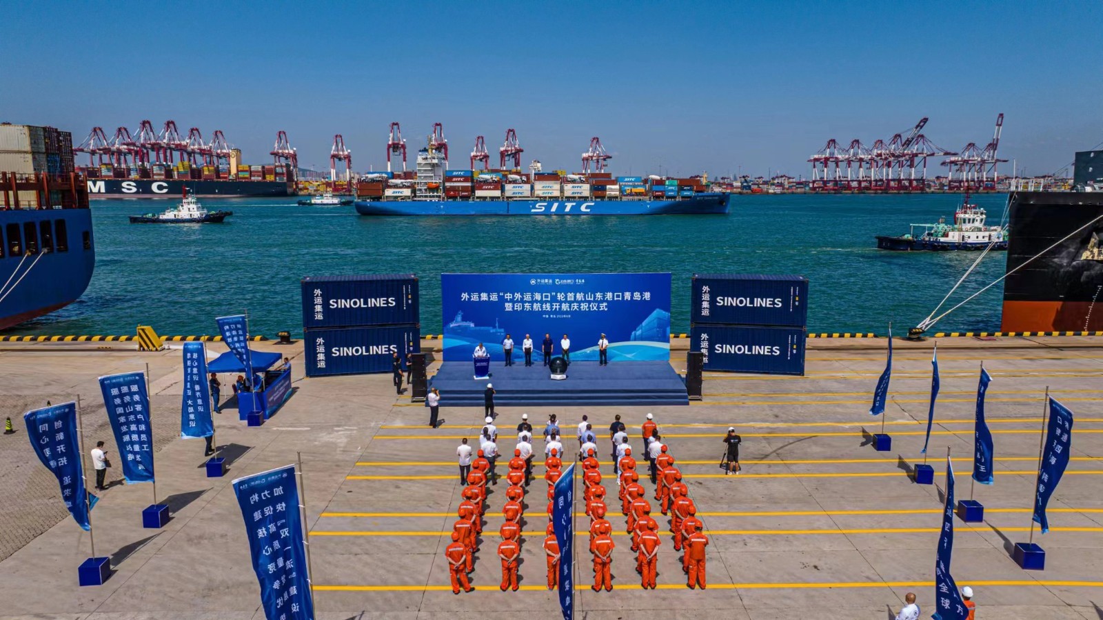8月30日,中外运集运印东航线开通仪式在山东港口青岛港QQCTU举行——航线首班“中外运海口”轮从山东港口青岛港出发,将在16天后抵达印度钦奈,标志着中外运集运印东航线正式开通。