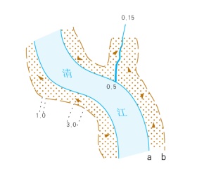 按自然形状、走向注出依其面积大小和长度选择字号但江、河上游和支流的名称字号不能超过下游和主流的名称字号另外,名称一般注在河流、湖泊的内部当内部不能容纳时,可注在外侧。