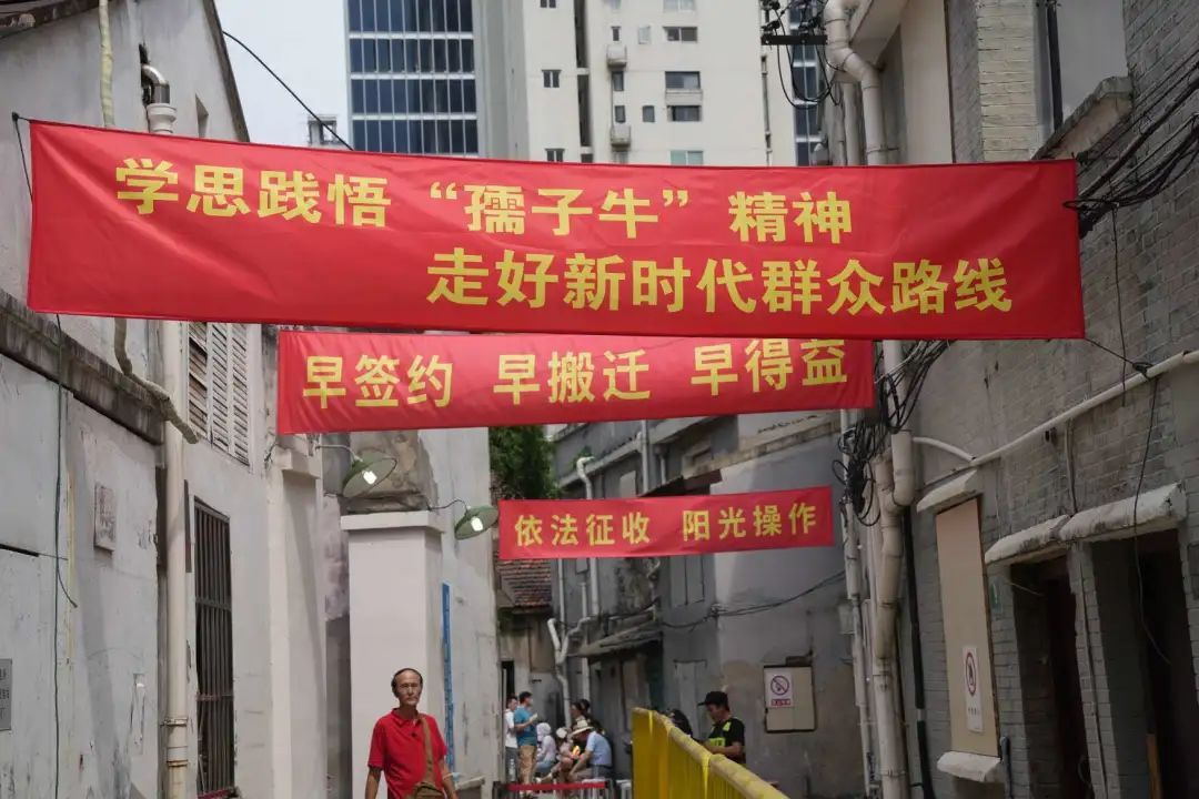 在“两昌地区”,2017年征收项目昌平路桥市政工程周边旧改案例,让居民口耳相传“早走早得益”,这一项目是静安区实行“一证一套”、全货币引导方案的征收地块。其高比例生效、早签多得益的示范效应,也让“摒”到后面能多拿的“老证思想”慢慢消退。因而,在此次江宁路街道签约的过程中,一方面居委会工作人员和青年孺子牛突击队“宣传勤”,一方面居民主动意识强,居民们的签约也非常爽快。