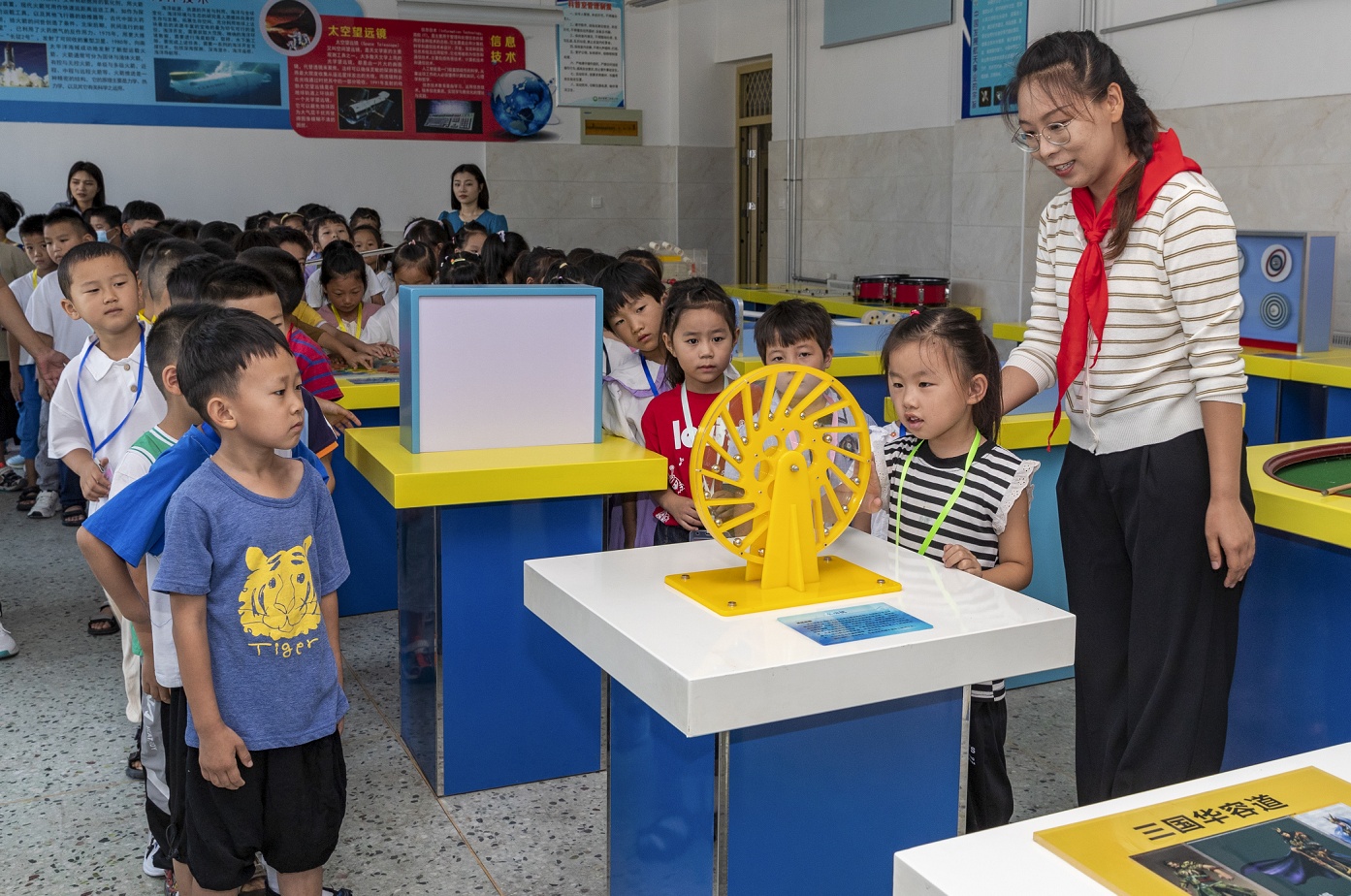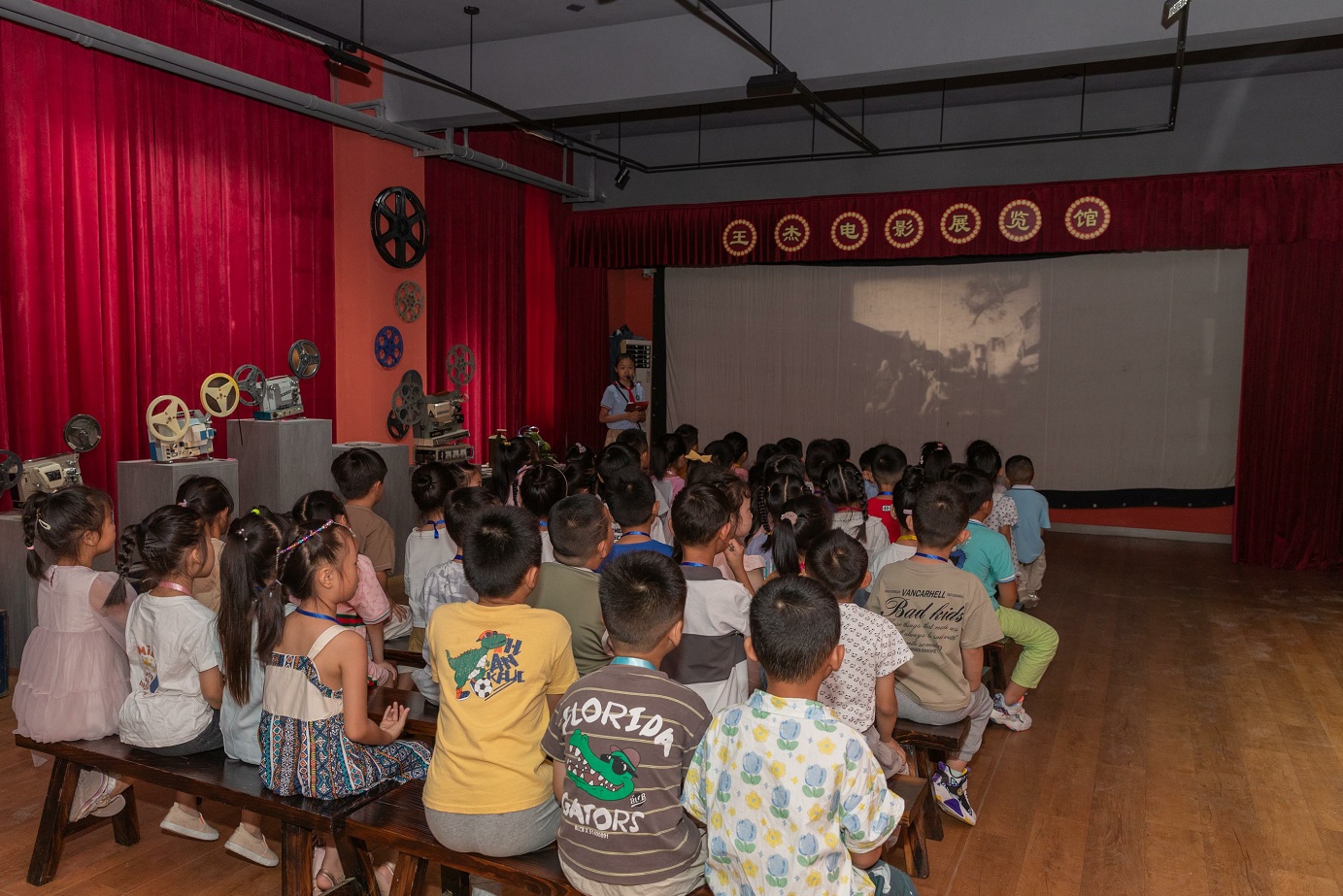 随后,老师带领新生们参观了校园科普馆、王杰摄影博物馆和王杰电影展馆等。小讲解员通过绘声绘色的讲述,进一步厚植他们的爱国情怀。师生们还齐聚电影馆,一起观看了红色爱国电影《地道战》。
