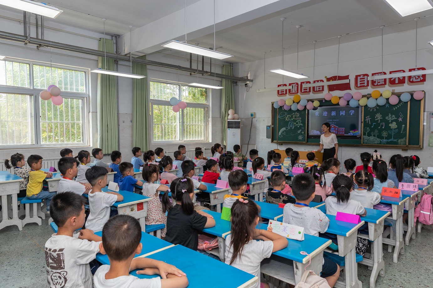 8月31日,金乡县第二实验小学迎来了新学生。学校聚焦爱国主义教育、红色历史情怀等主题,组织了别开生面的“开学第一课”。老师利用PPT课件,引导学生回顾红色历程,了解爱国主义教育的内涵和社会主义核心价值观,让新生们感受到祖国今天的繁荣富强来之不易。