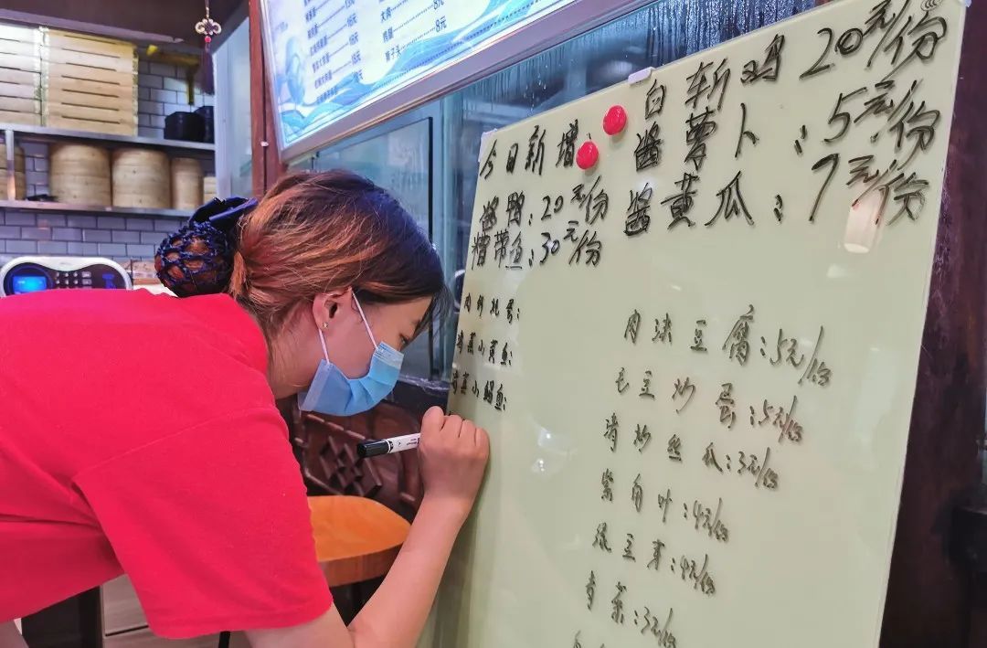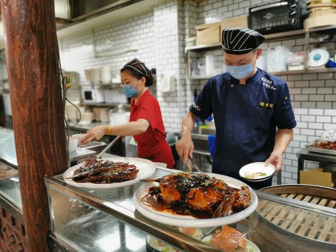 值得一提的是,菊泉饭堂老年助餐点还经常观察老年朋友们的需求变化,并为他们适时调整菜单。8月小海鲜大量上市,采购价格也便宜了,助餐点就推出了单点菜品,为想吃海鲜的老年人多个选择。例如,一份28元一盘的梭子蟹就很有吸引力,小黄鱼、小鲳鱼等“价格美丽”的小海鲜也同样诱人。现在,助餐点的餐桌上最受欢迎的荤菜非鱼莫属了。