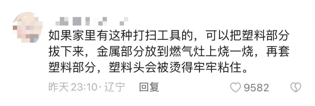 还有的人给出了解决方案:“可以将塑料部分拔下来,把金属部分放到燃气灶上烧一烧,再套上塑料部分,塑料头就能牢牢粘住了……”
