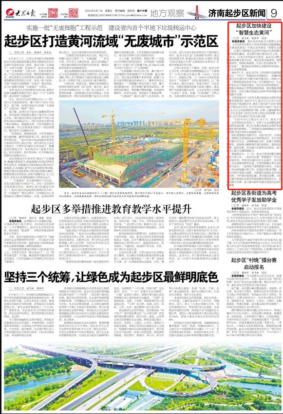 为贯彻落实好《济南市黄河流域生态保护和高质量发展规划》,2022年6月,起步区与山东产业技术研究院开展战略合作,建成了省内首个区级“智慧黄河”特色应用平台。平台充分利用天地空一体化手段,全方位立体监测感知气象、水情、土壤墒情等信息,对生态保护、防汛安全等工作的灾前预警、灾中调度、灾后评估提供了坚实决策支撑。
