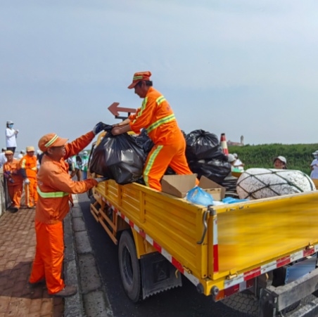 潮汐给我们带来便利的同时,也会给海岸带来大量的垃圾,浦东新区每月均会组织净滩活动,开展垃圾清理志愿宣传工作。