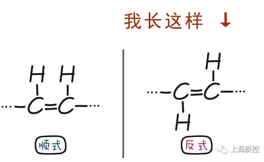 我是反式脂肪酸,是一种不饱和脂肪酸。根据不饱和脂肪酸分子式的氢原子方向不同,分为“顺式”和“反式”两种结构。