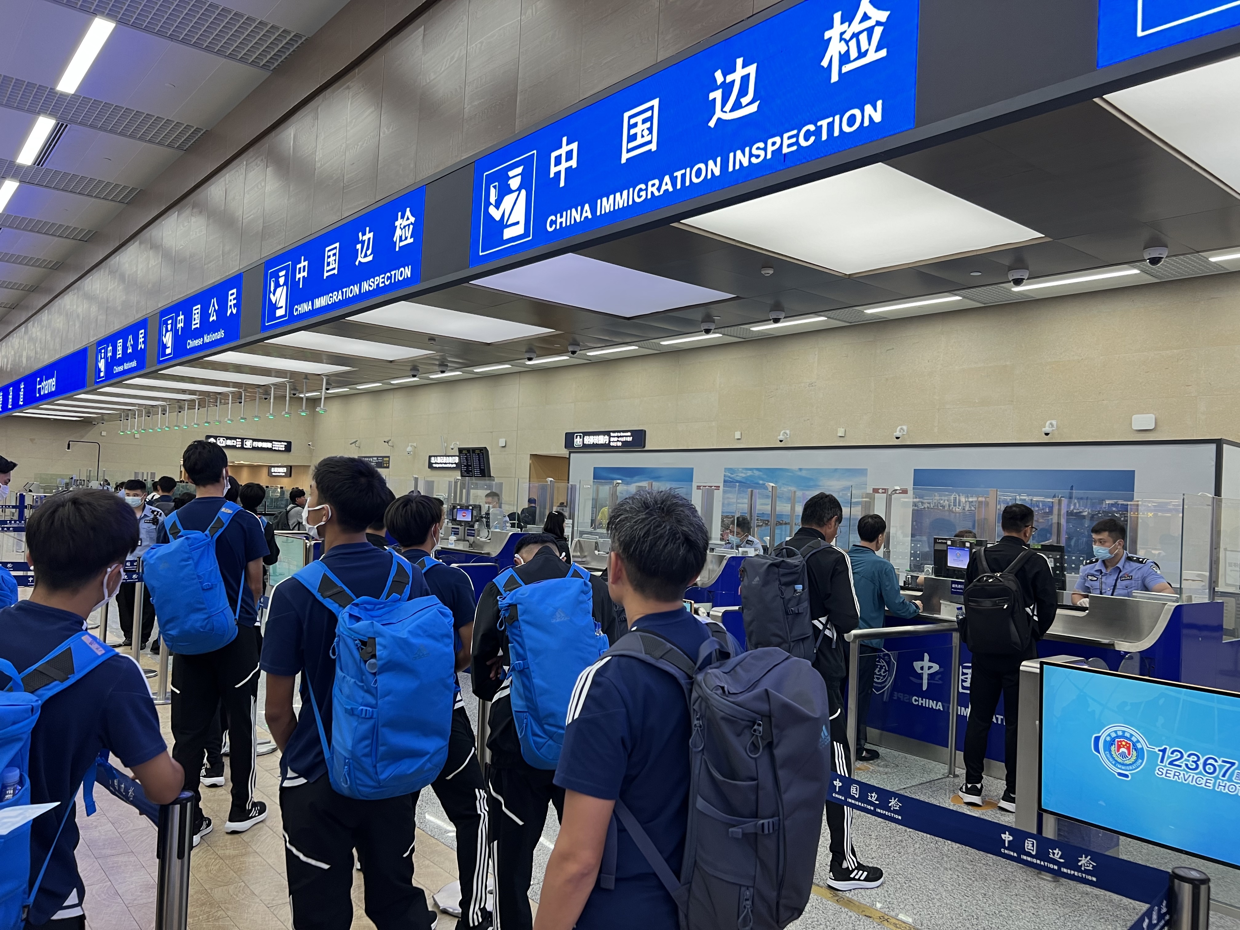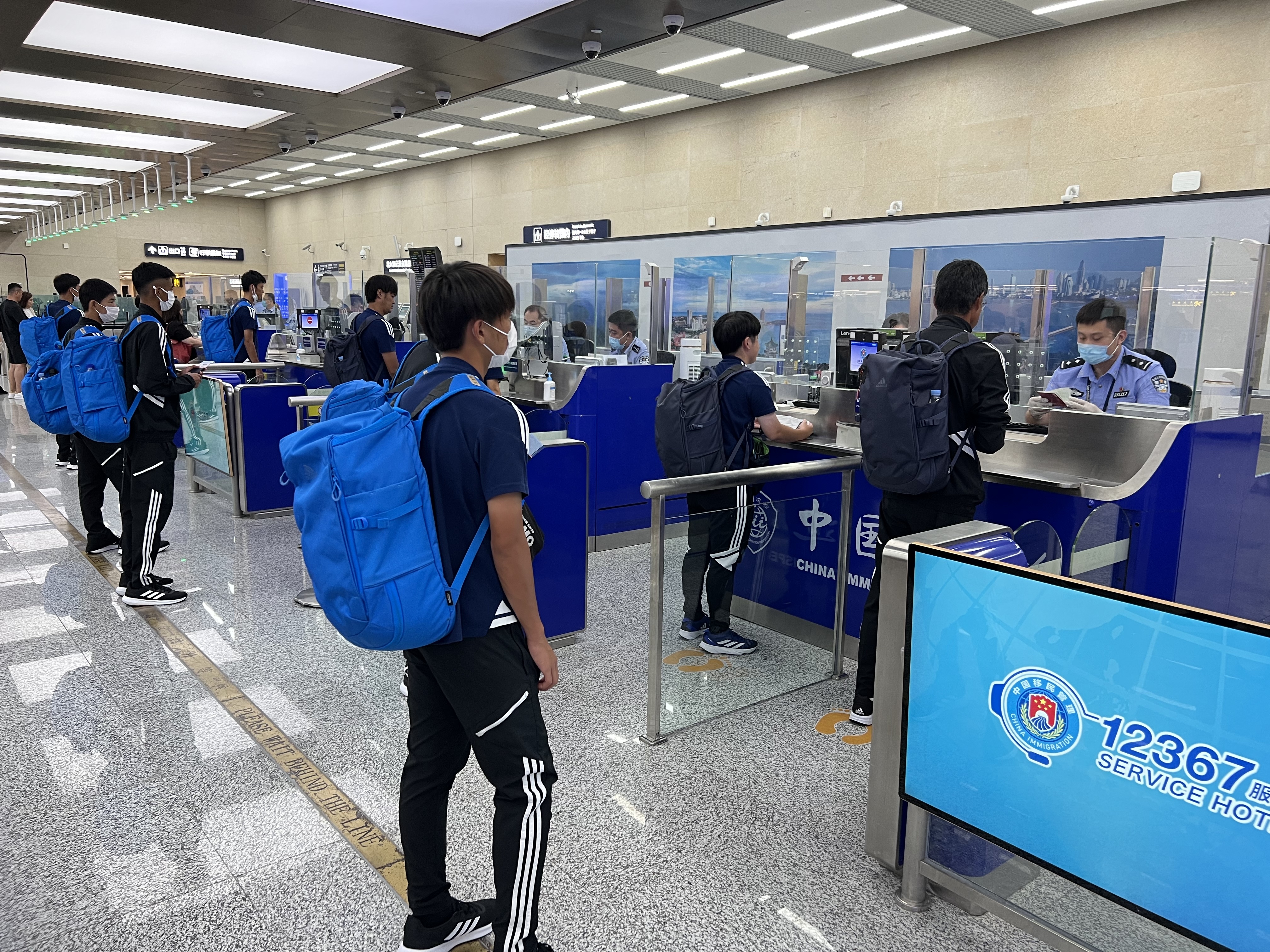 2023东亚足联男子U15锦标赛将于9月1日-9月8日在青岛举办。8月29日,参加锦标赛的一行27名队员及随行人员,乘坐KE843航班从青岛机场口岸入境参加比赛。