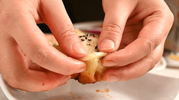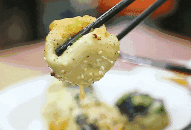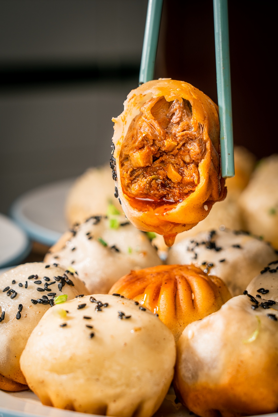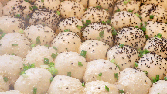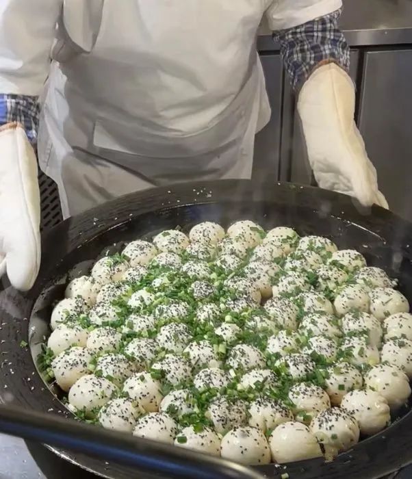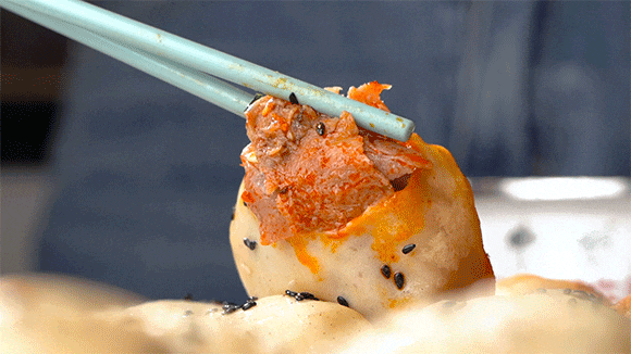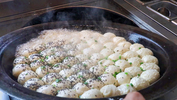 收尾的时候,撒上芝麻和葱花,卖相更加诱人。葱的香、肉的鲜,一口难忘,呼吸间热气氤氲,面庞上满是满足而放松的笑容。
