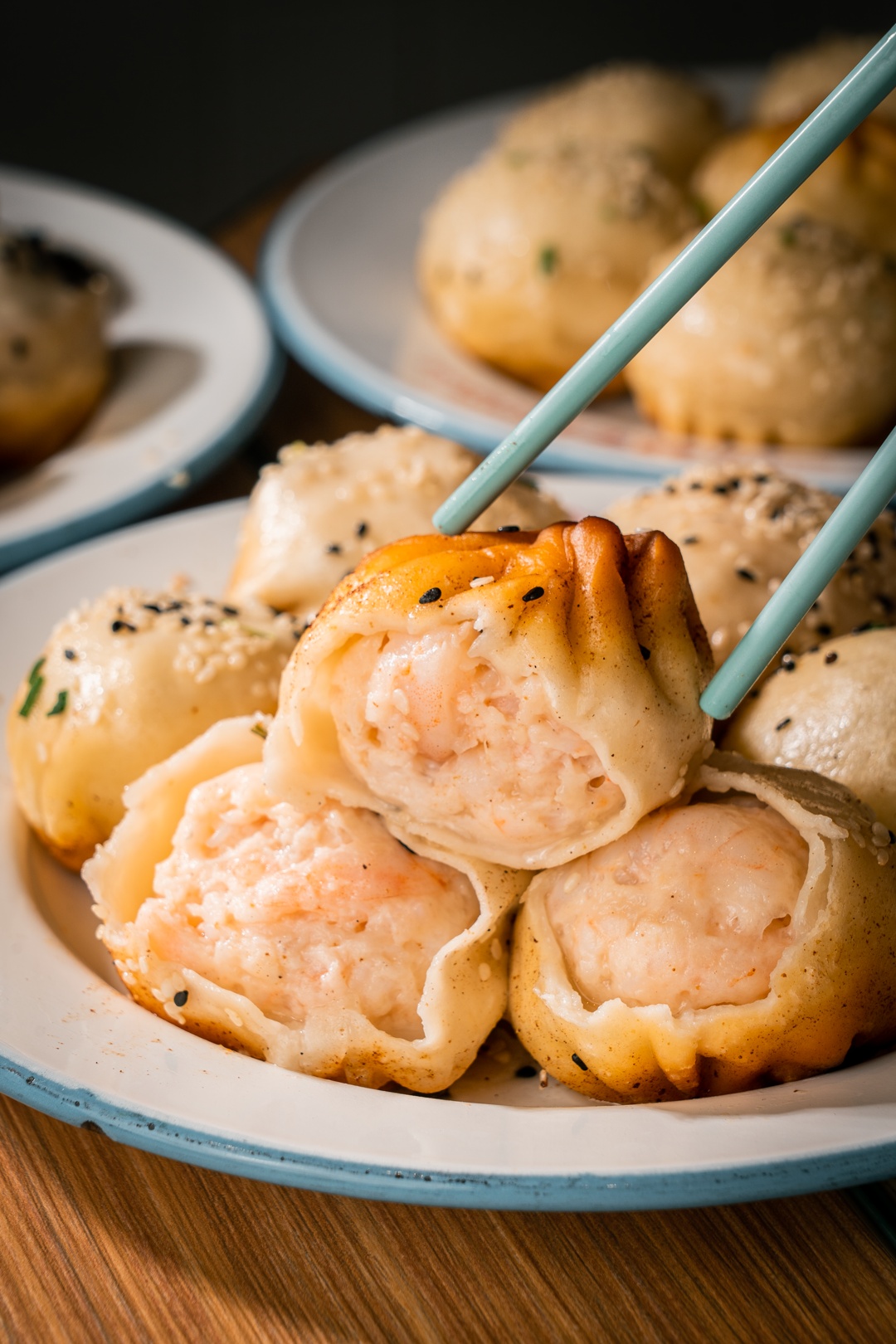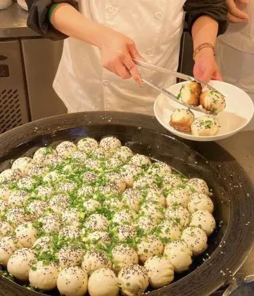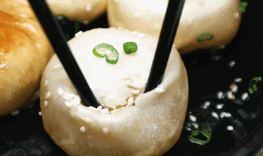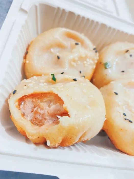 生煎包金黄的外表和充盈的汁水简直太诱人啦!一口吃尽,嘴里定会留下带焦香的余味。如果每天早餐不知道吃什么的话,不如就吃生煎包吧~