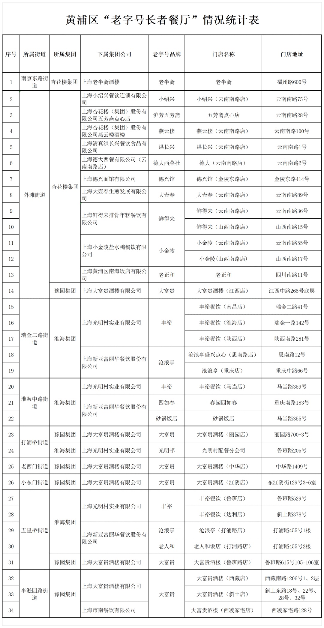 黄浦区是沪上“老字号”餐饮企业最集聚的区域之一,近年来,黄浦区各街道牵手“老字号”品牌,为黄浦老人带来用餐“食”惠。近日,又有第三批17家“老字号长者餐厅”正式启用,黄浦区民政局联合上海大富贵酒楼有限公司、上海光明村实业有限公司、上海新亚富丽华餐饮股份有限公司、上海杏花楼(集团)股份有限公司,共同推出的17家“老字号长者餐厅”正式上线,本次上线的品牌包括“大富贵、丰裕、光明村、沧浪亭、砂锅饭店、四如春、老半斋”7个老字号品牌。
