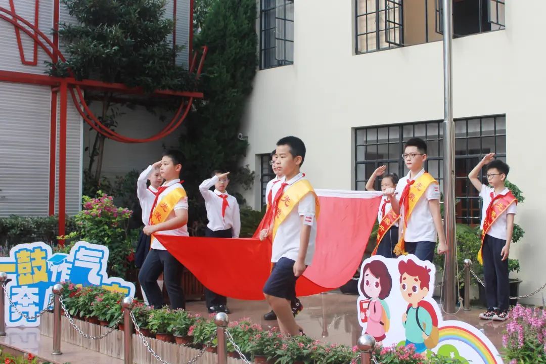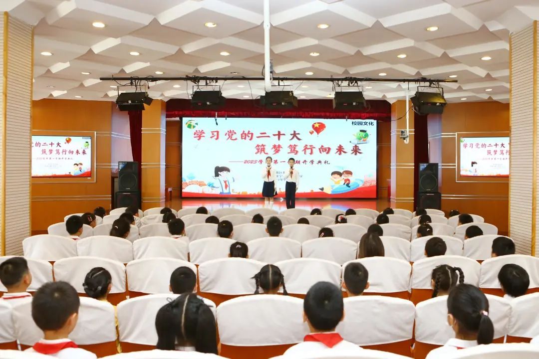 当天上午,全校师生排着整齐的队伍来到操场。伴随着冉冉升起的国旗,新学期正式拉开序幕。