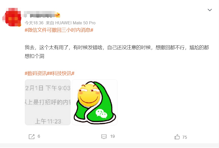 9月1日,有不少网友发文称“微信撤回延长到了3小时”。