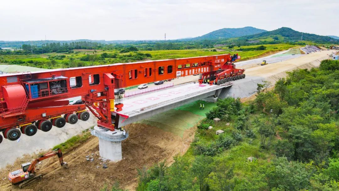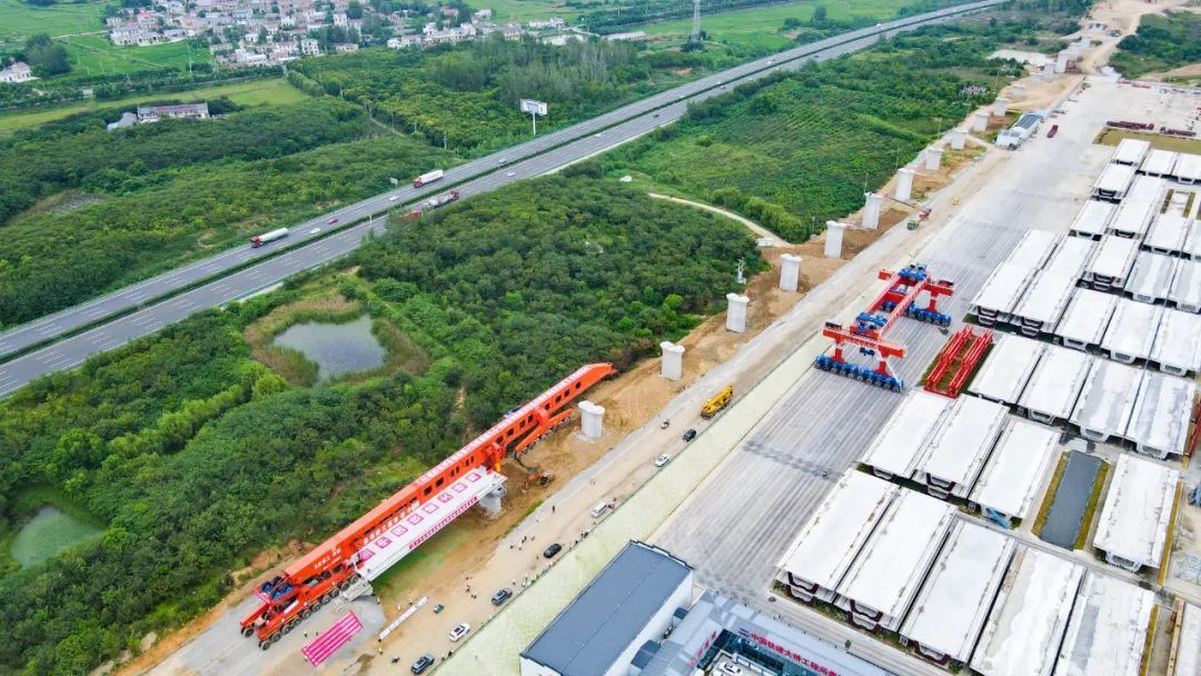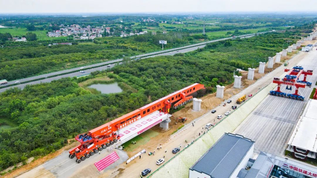 8月27日13时30分,在安徽省合肥市肥东县包公镇施工现场,随着“昆仑号—Ⅱ型”运架一体机将长40.6米、宽12.6米、高3.25米,重930吨的箱梁稳稳地架设在南鹰庄特大桥桥台—18号桥墩上,标志着上海至南京至合肥高铁首榀箱梁成功架设,项目建设施工进入全线架梁阶段。