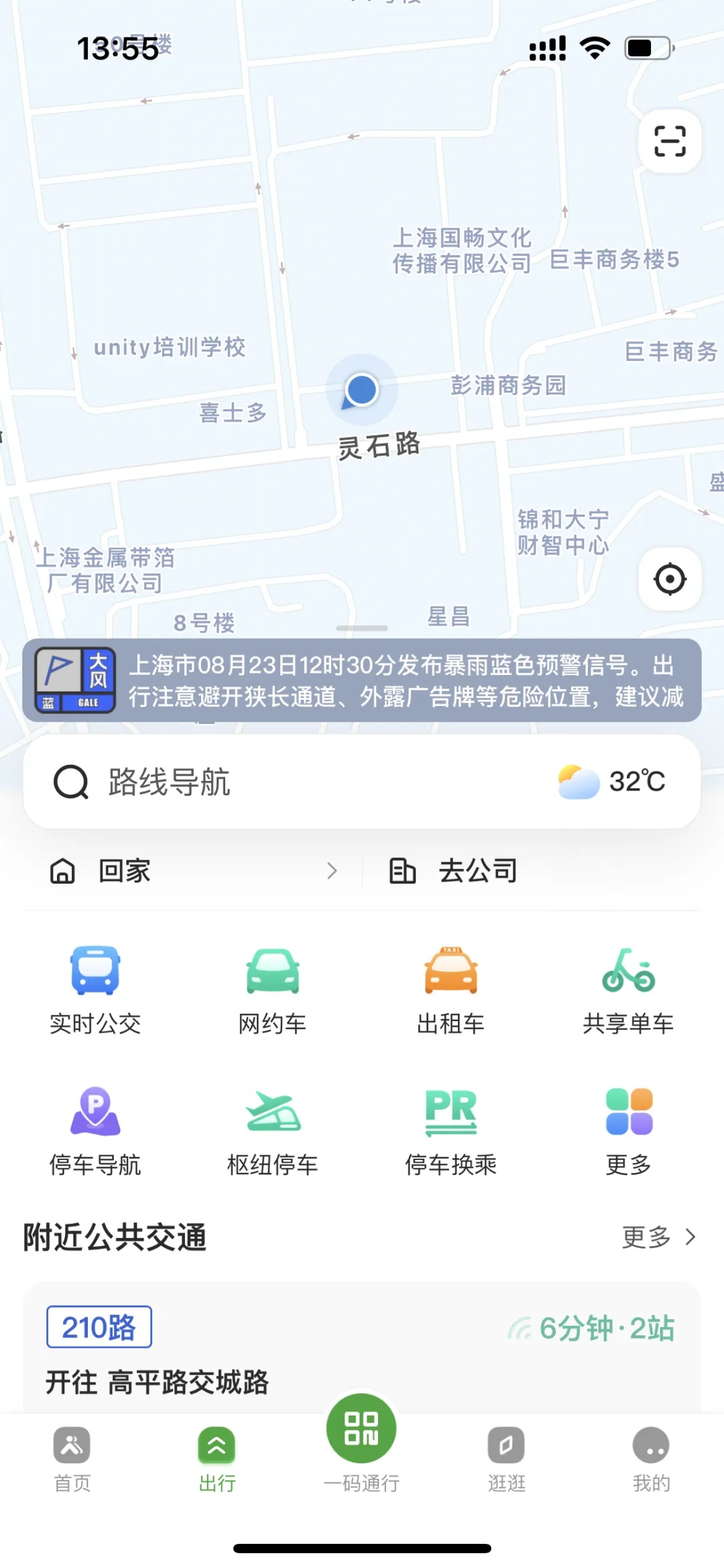 为了便于市民接收出行资讯,APP端内接入了天气预警提示,出行途中突发台风、暴雨等预警信息,可以在出行版块收到推送。