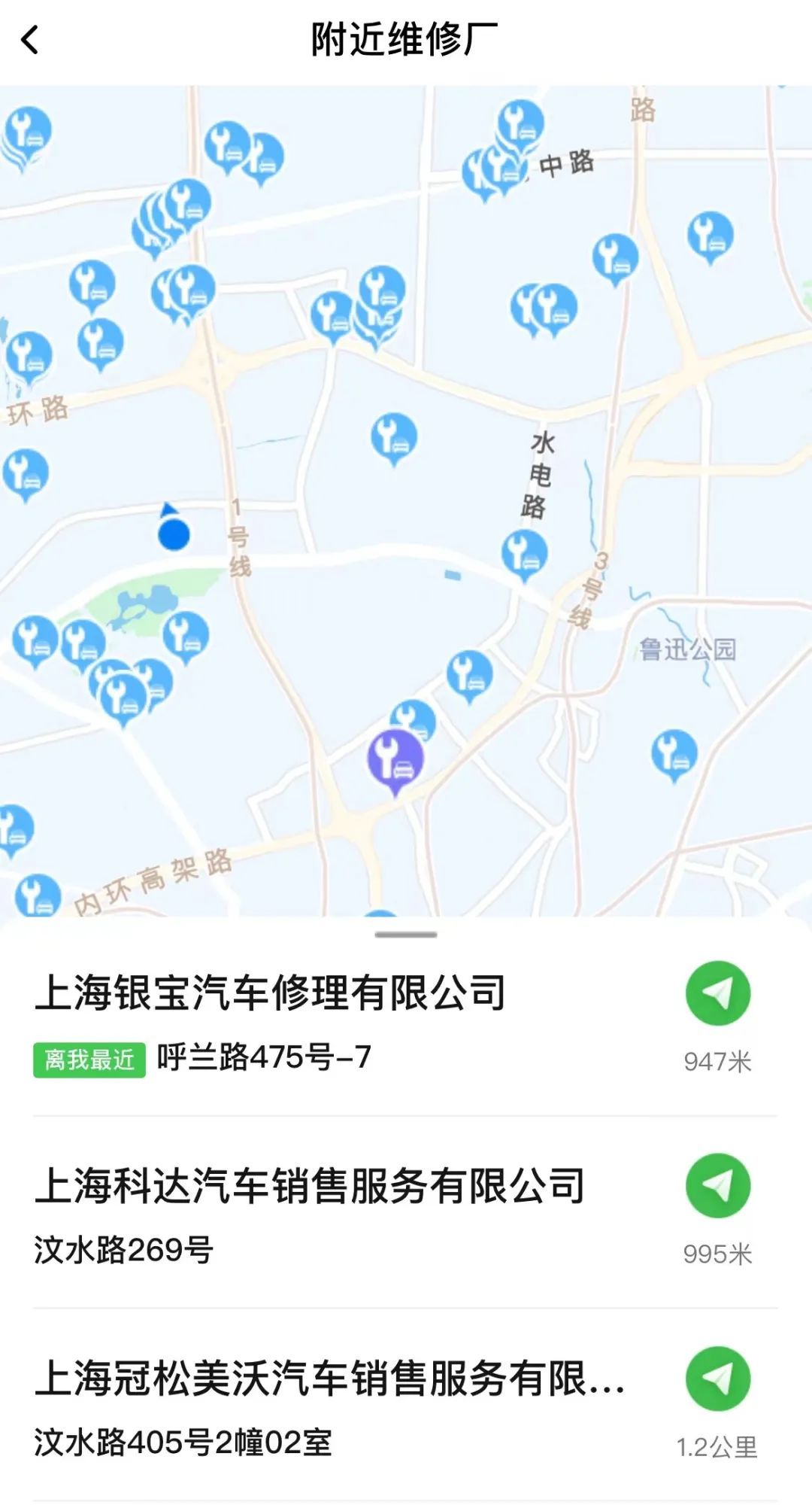 “一键拖车”汇集了近100家道路救援公司,用户在驾车途中如遇故障,即可在“车主服务”版块下点击“一键拖车”, 并且在“附近维修厂”功能里,车主能最快地找到离自己最近的修理厂,及时处理车辆故障等问题,保证自己的驾驶安全和体验。